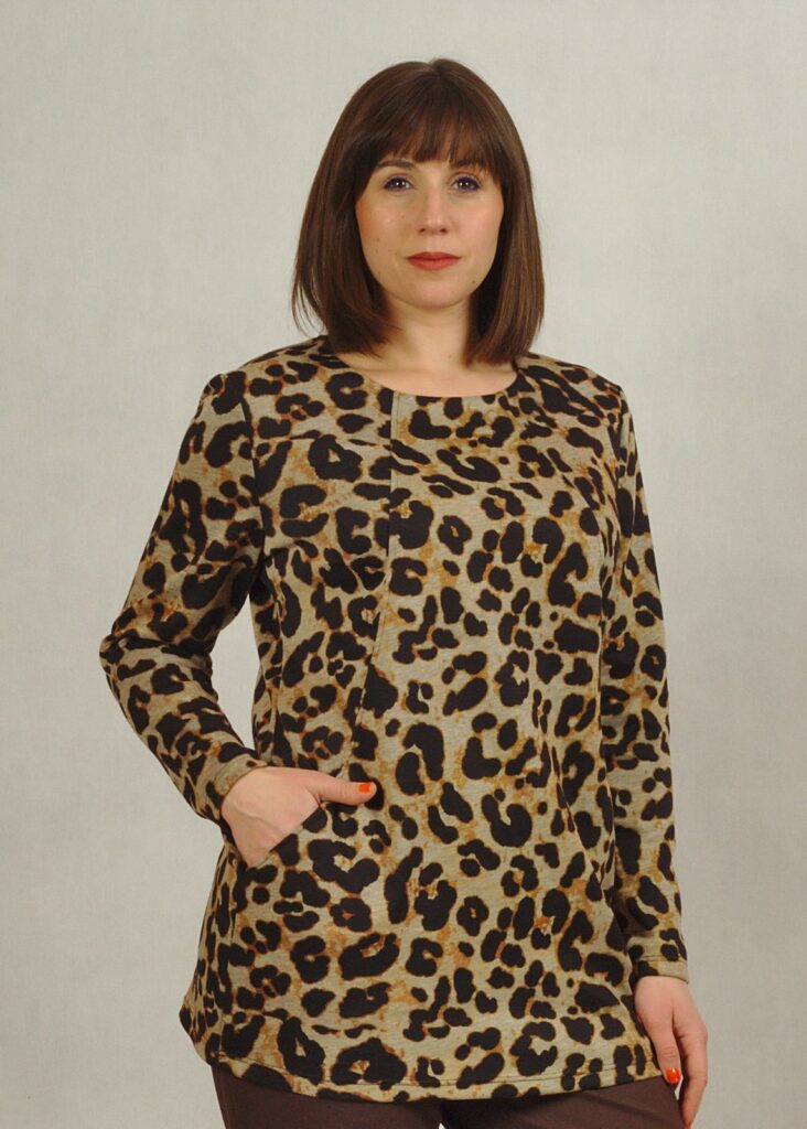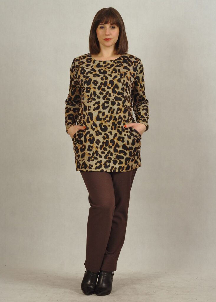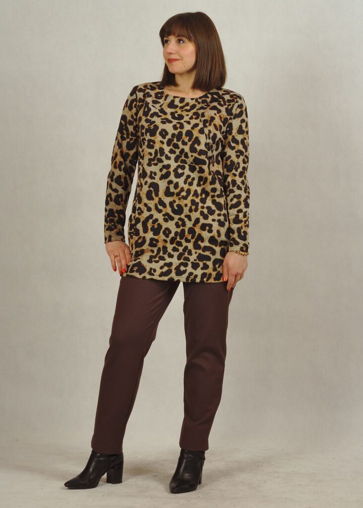 Ciepła tunika w panterkę z długim rękawem plus size /730/