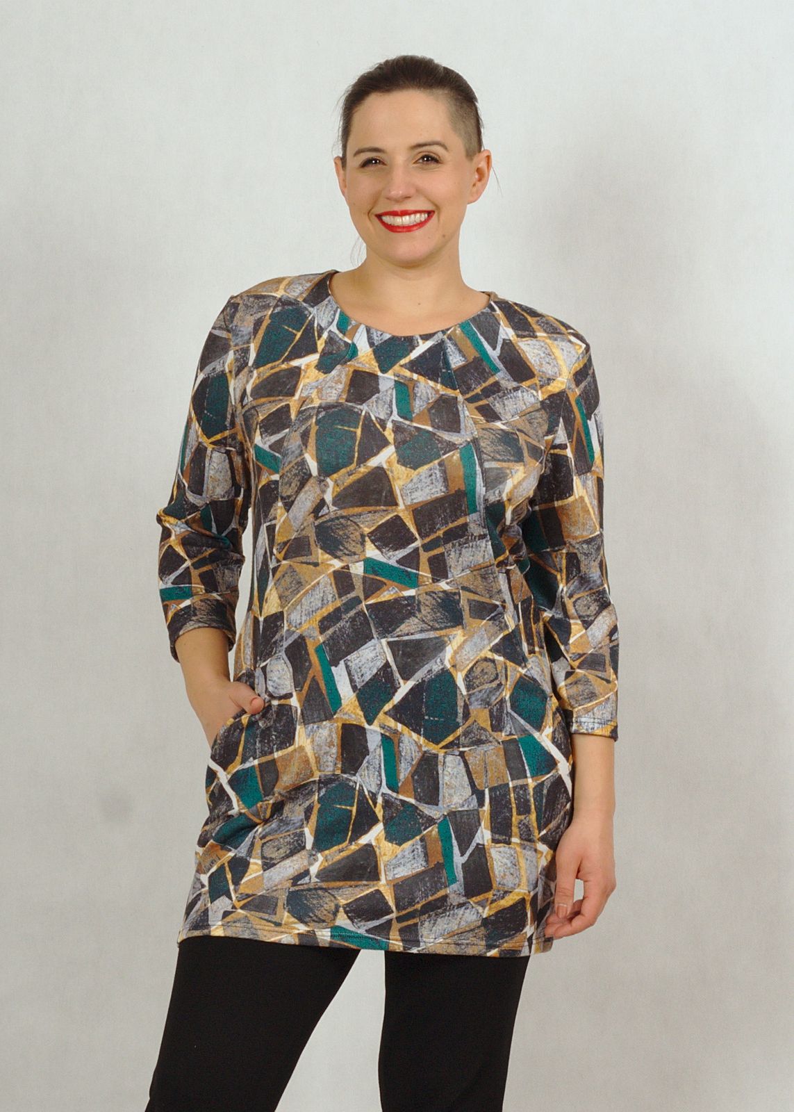 Taka tunika świetnie komponuje się z różnymi dodatkami i obuwiem, tworząc stylowe i komfortowe zestawy na co dzień.
