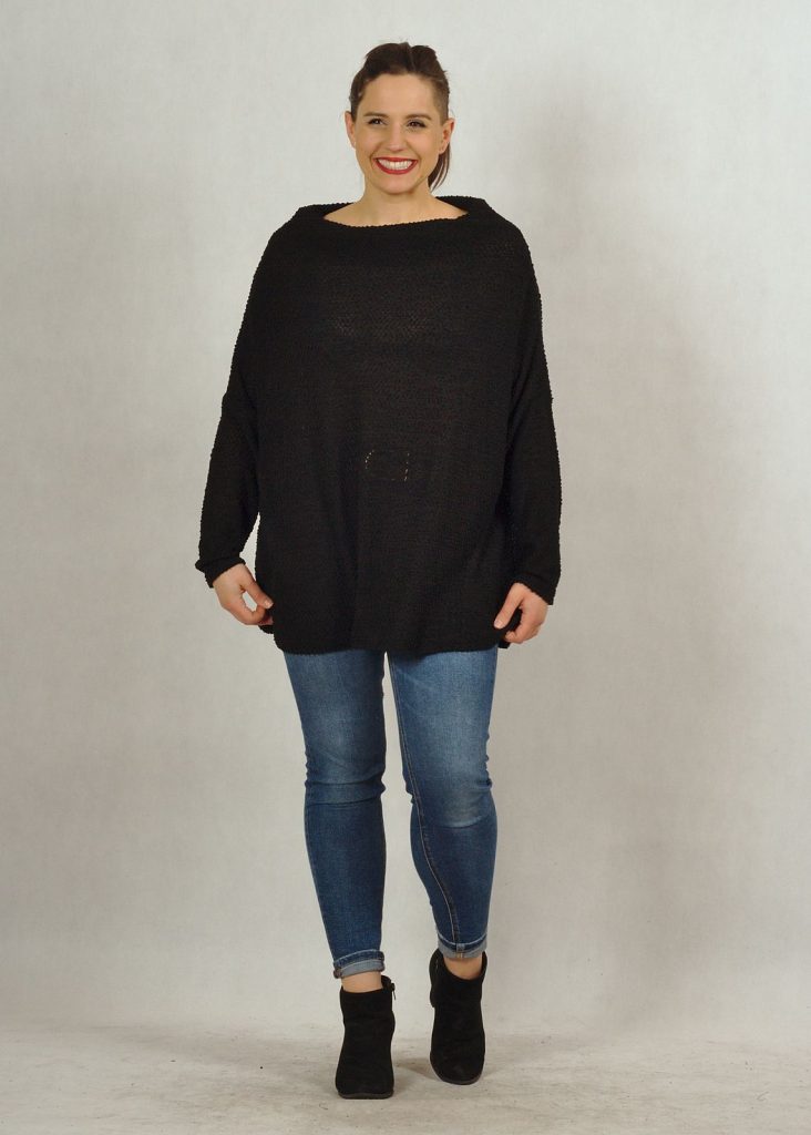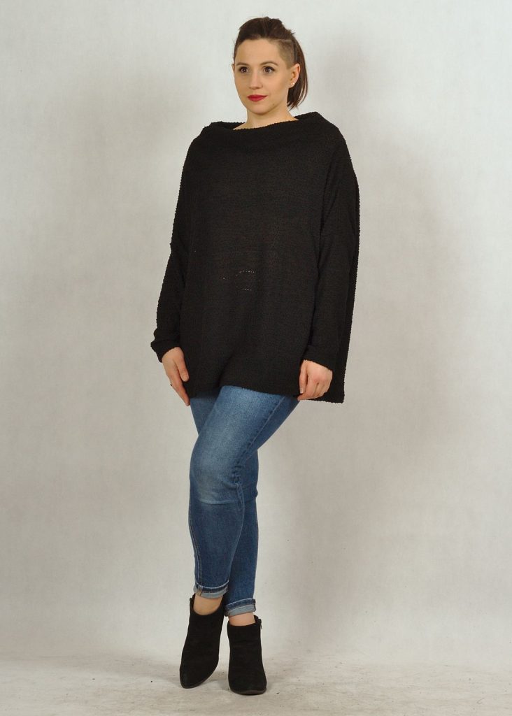 Ciepły czarny sweterek z pięknym luźnym dekoltem w łódkę typu oversize /510/