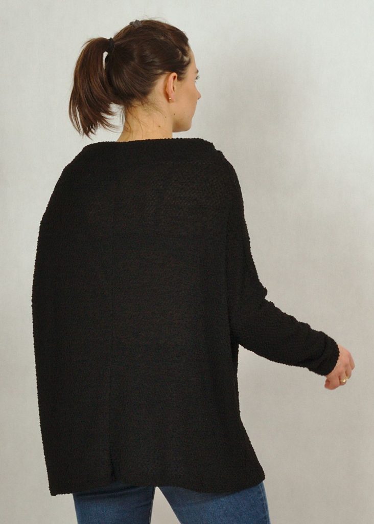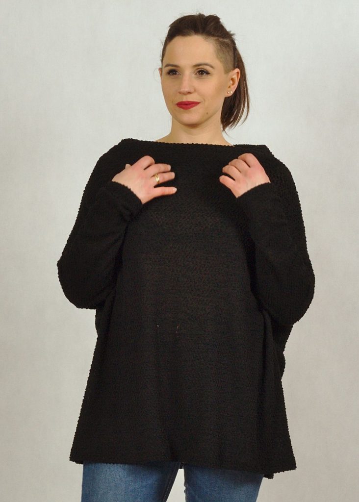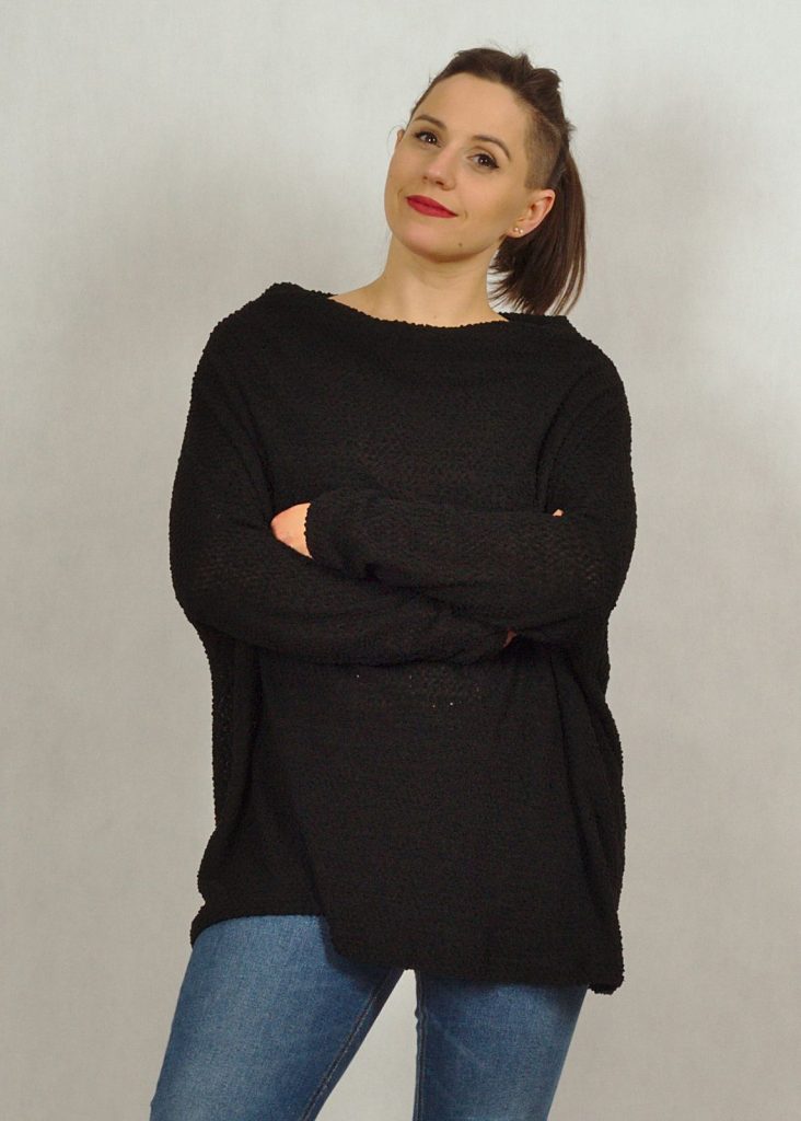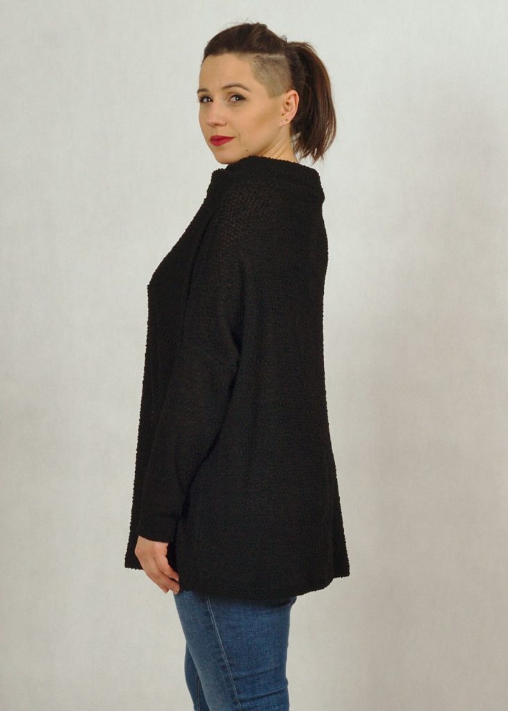 Piękny, ciepły sweterek w stylu oversize to propozycja dla wszystkich typów sylwetek. W kolorze idealnym – czarnym, będzie Ci pasował niemal do wszystkiego.