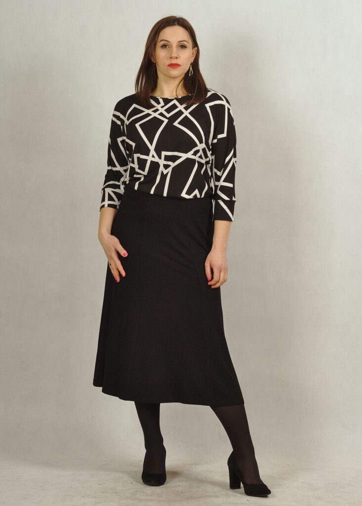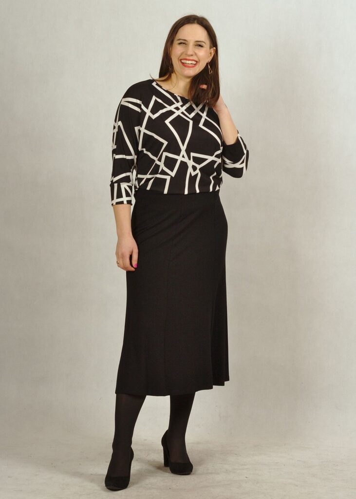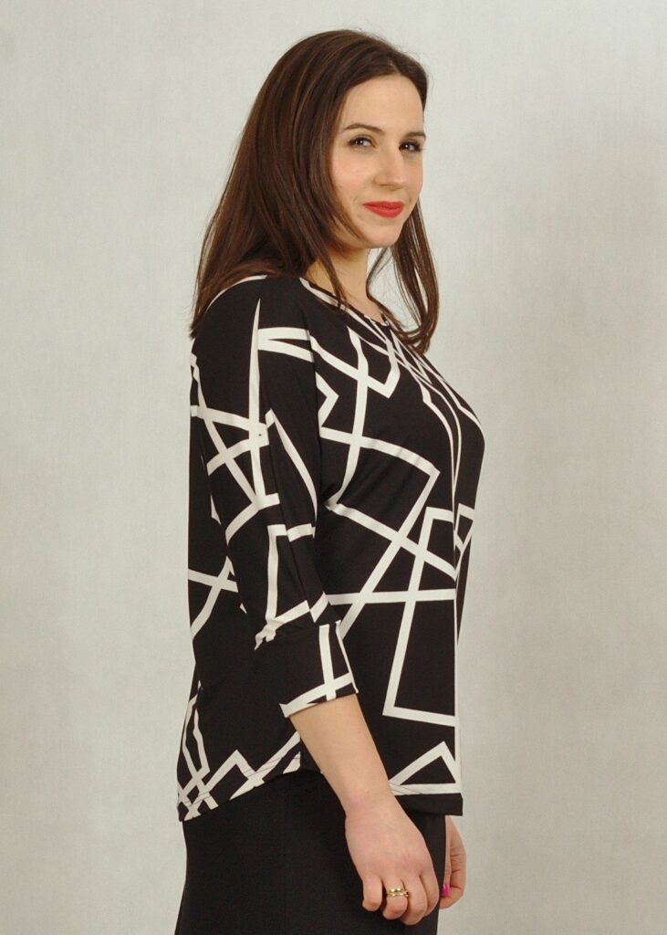 Czarna bluzka w białe wzory dzianinowa z rękawem 3/4