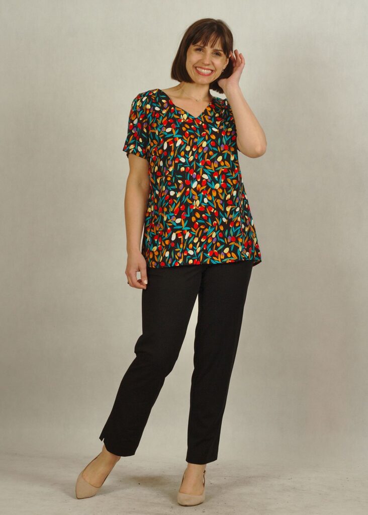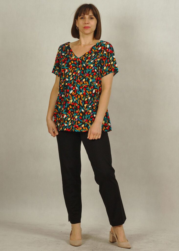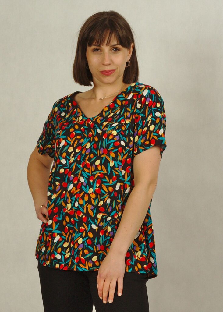 Bluzka jest uszyta w rozmiarach plus size i standard size.