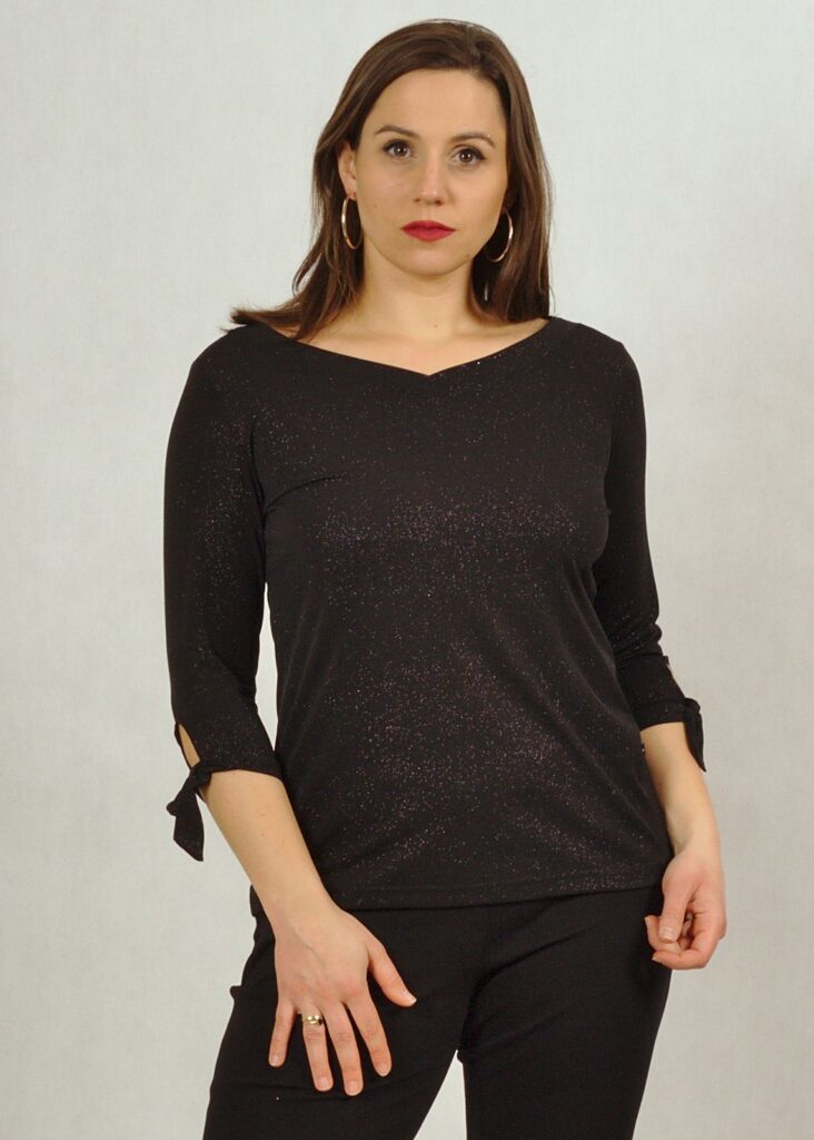 Czarna bluzka z drobnym połyskiem plus size /669/