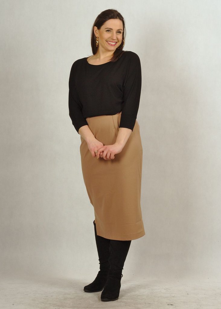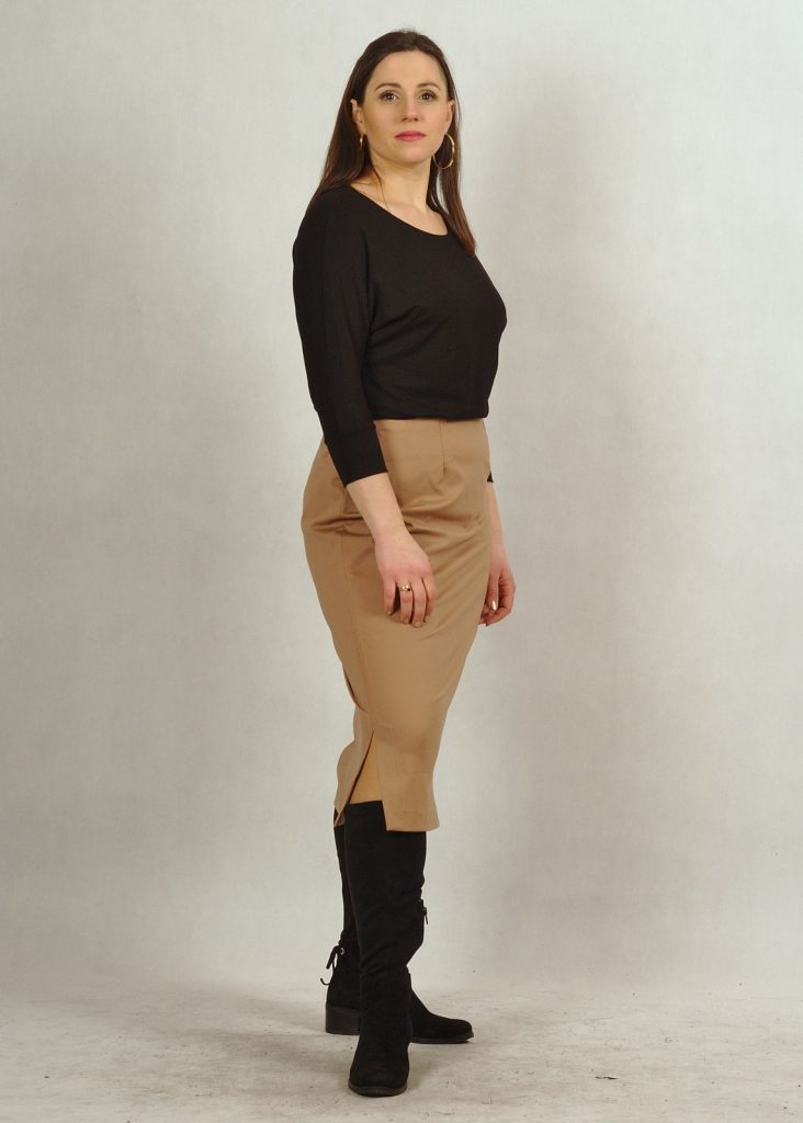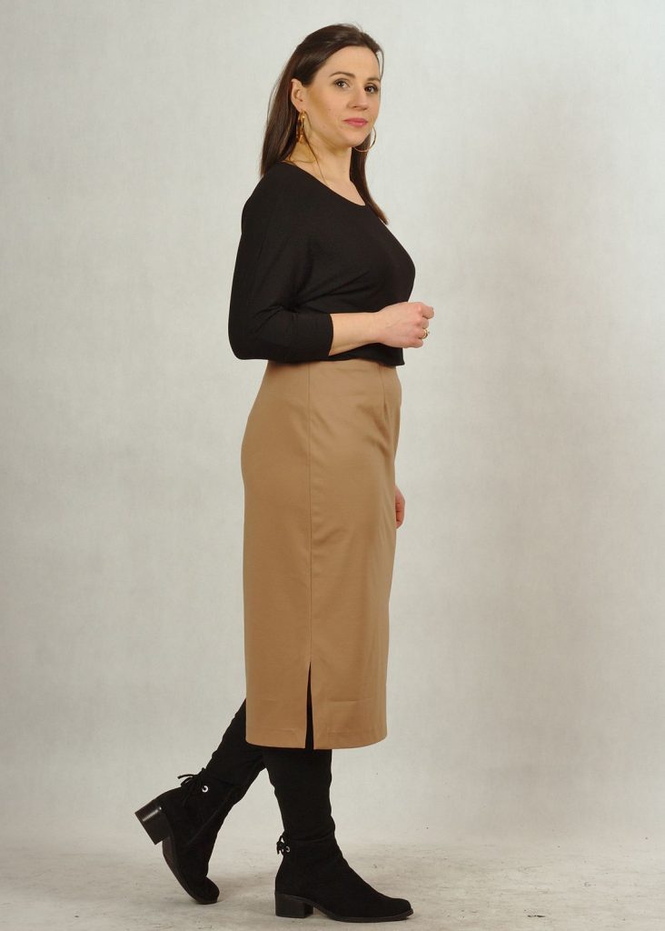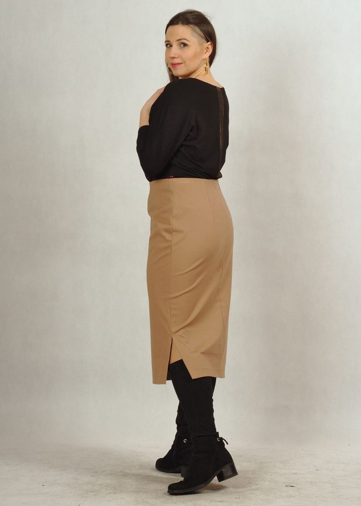 Bluzkę możesz stylizować do środka spódnicy lub spodni (tak ja modelka na zdjęciach w spódnicy), ale też świetnie będzie wyglądać swobodnie puszczona.