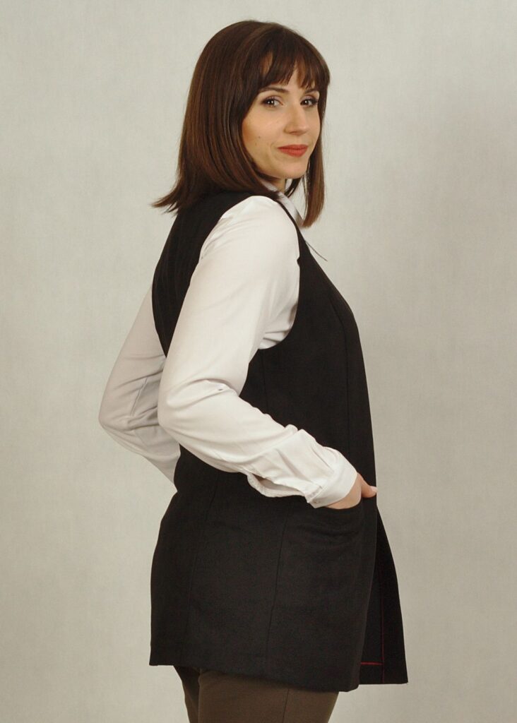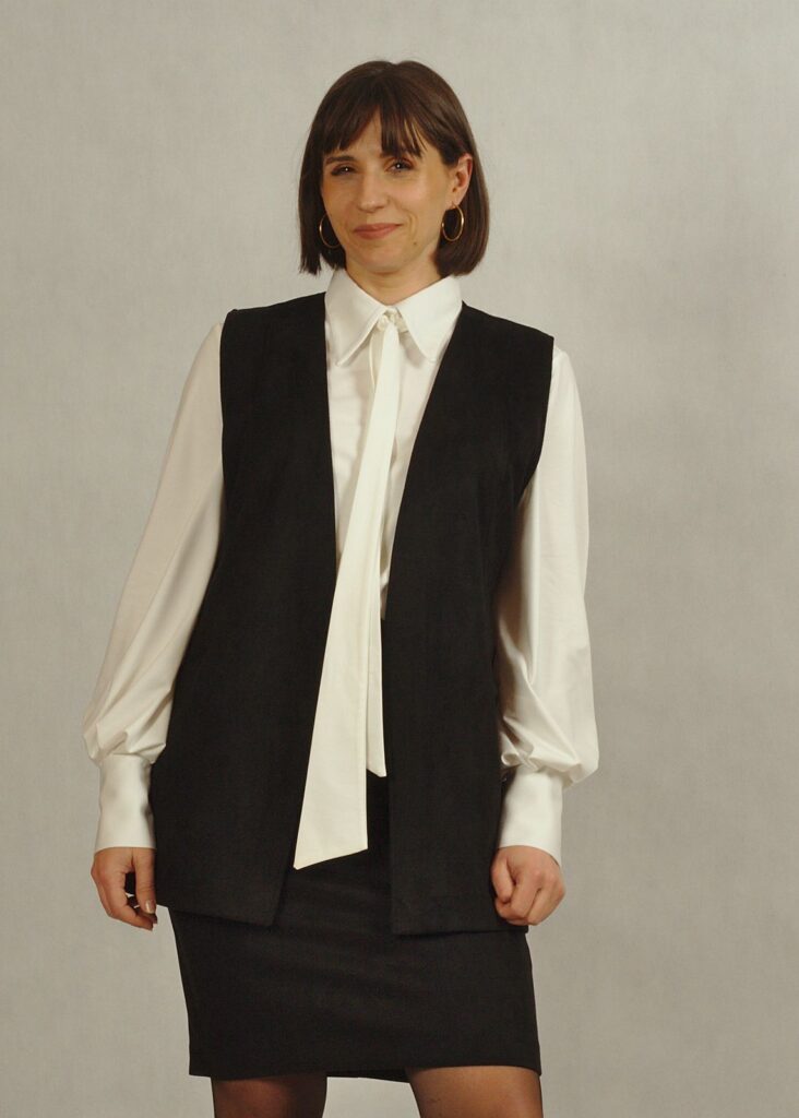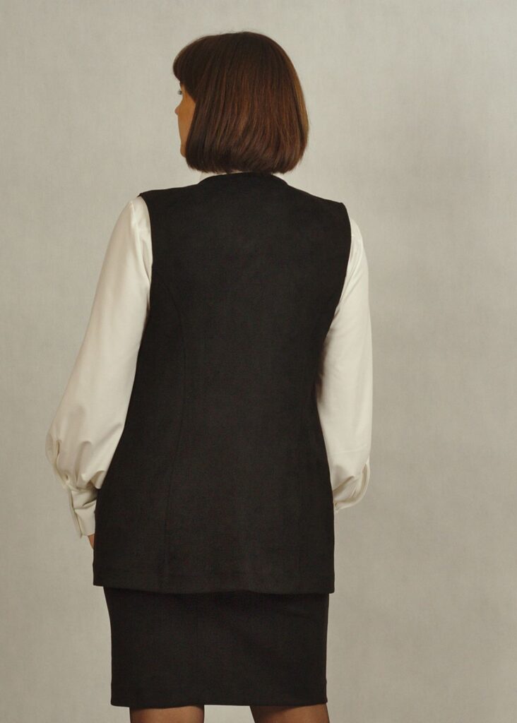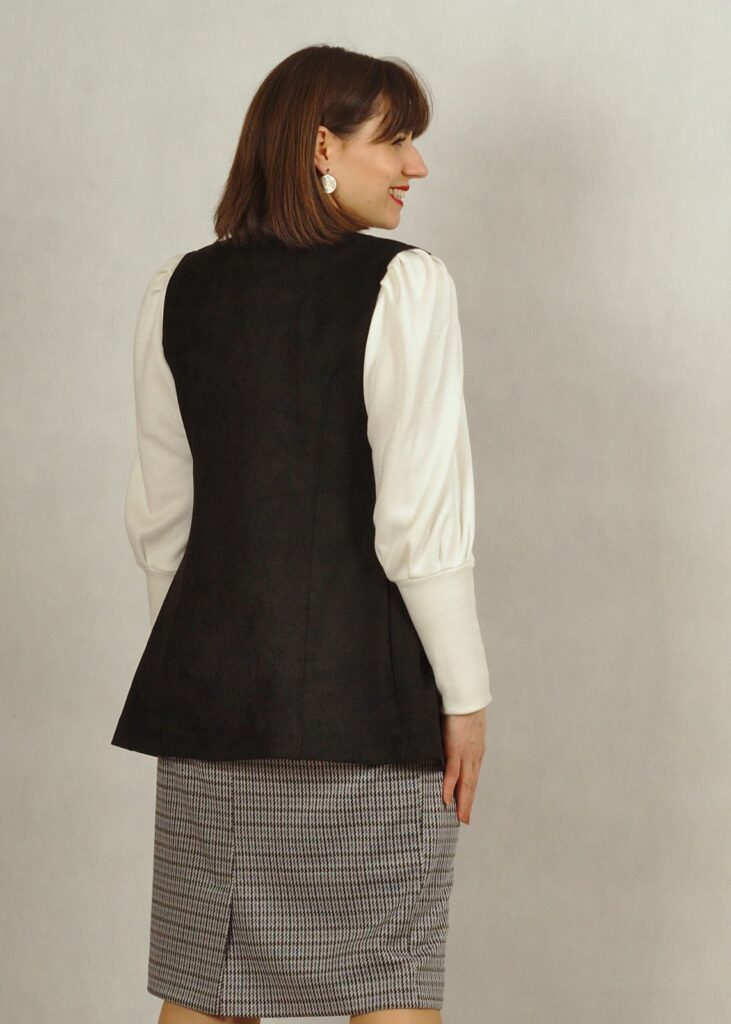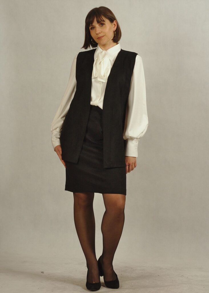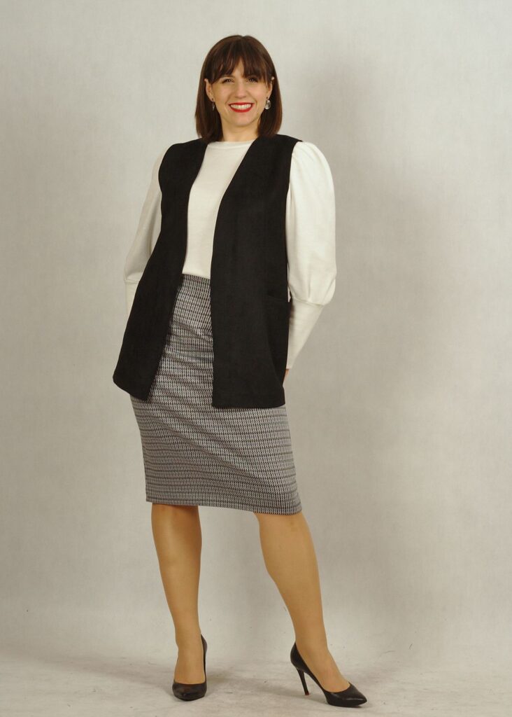 Elegancką kamizelkę połączysz z naszą spódnicą, wykonaną dokładnie z tego samego materiału. Świetny pomysł na komplet!