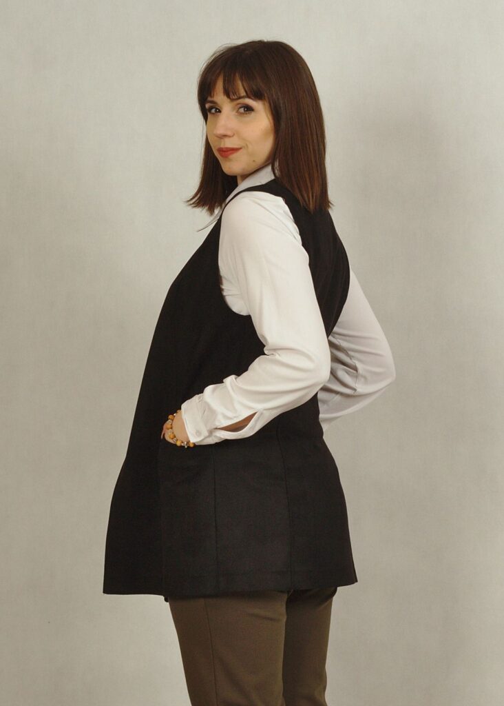Czarna kamizelka z kieszeniami będzie się nosić bardzo komfortowo.