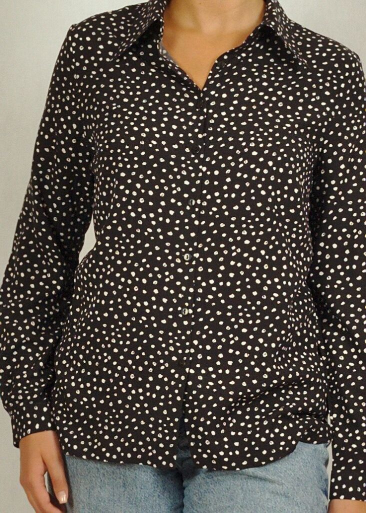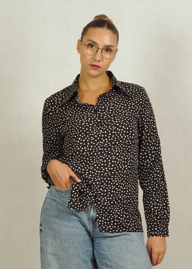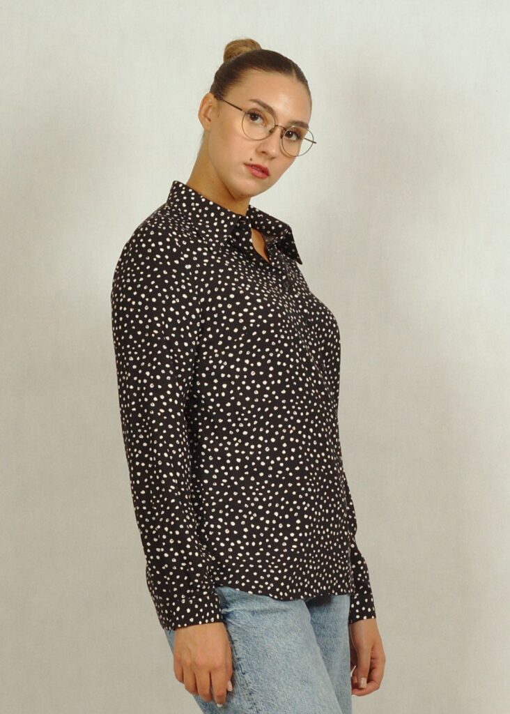 Czarna koszula z wiskozy z długim rękawem w białe wzory /790/