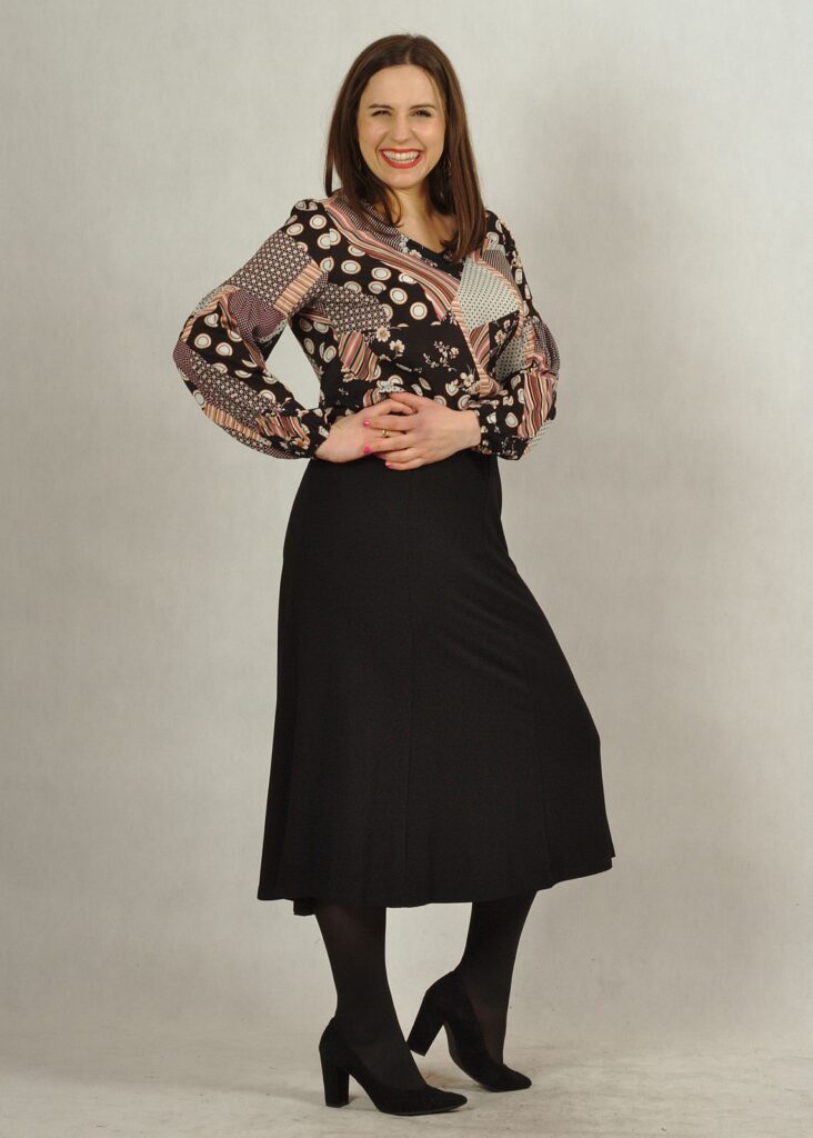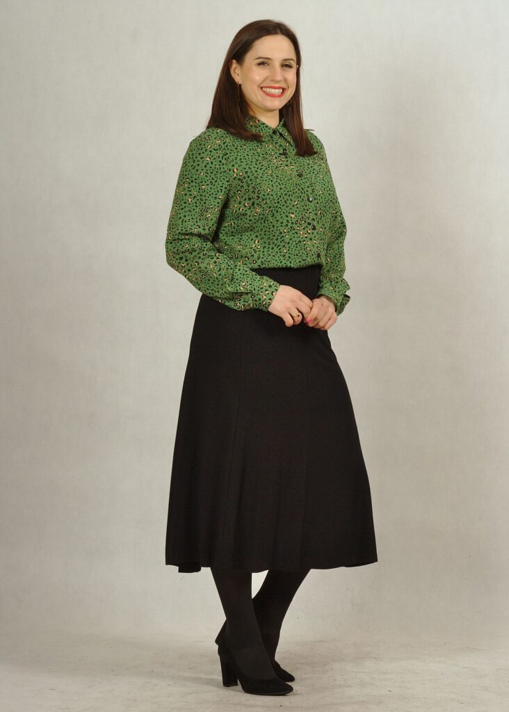 Jej fason jest dobrze przemyślany – spódnica ma 6 klinów, co sprawia, że się pięknie układa.