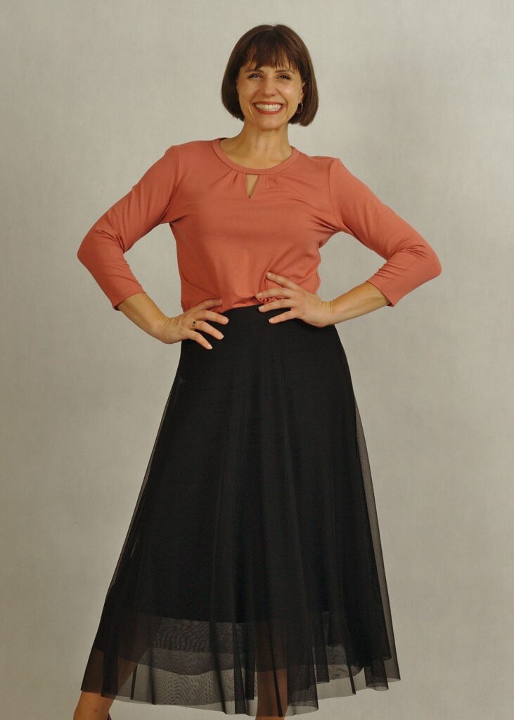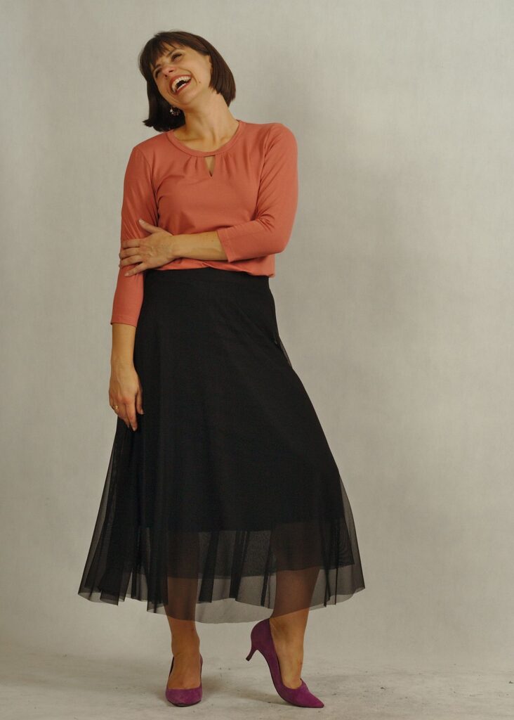 Dodając prostą bazową, jednokolorową bluzkę tworzysz gustowną i modną stylizację.