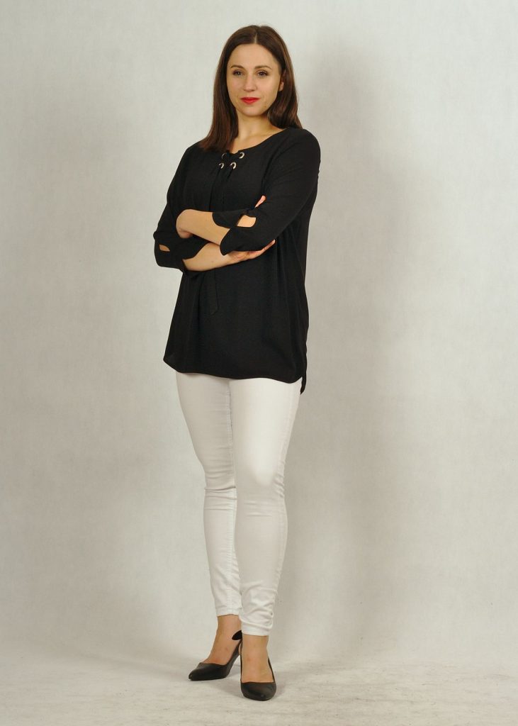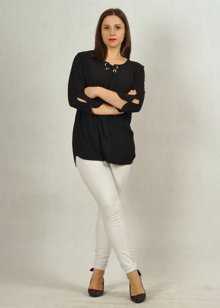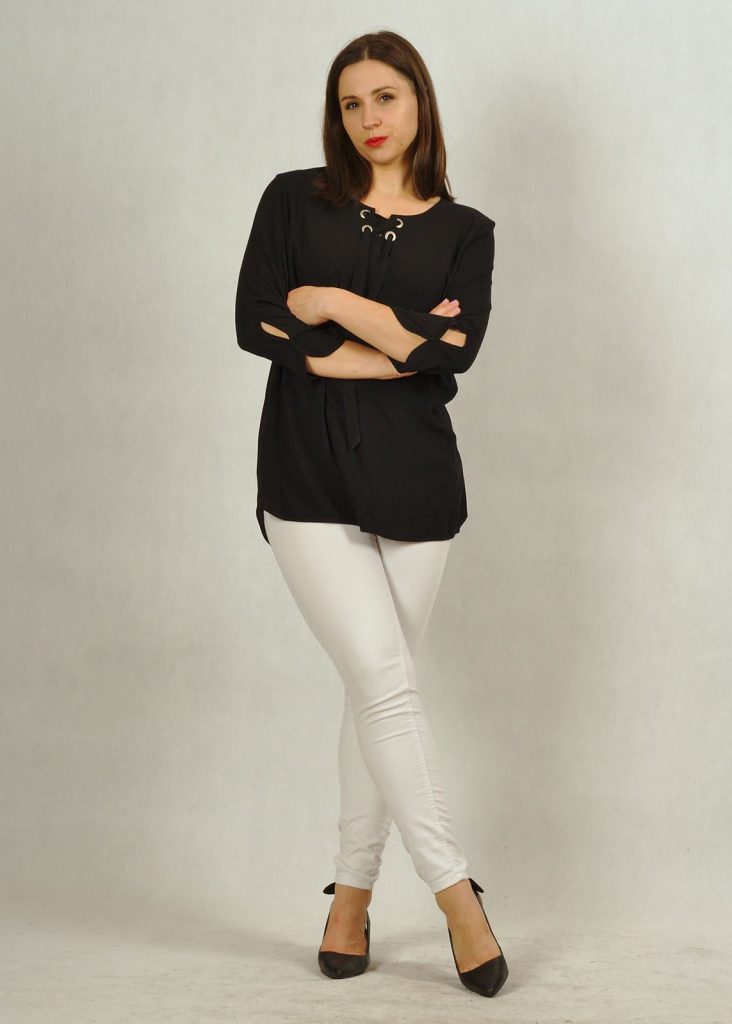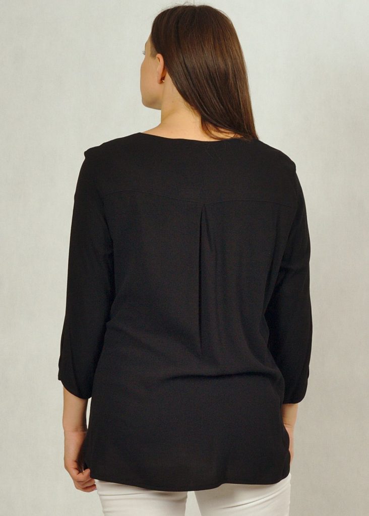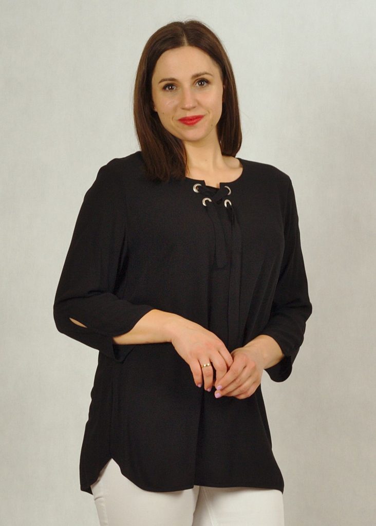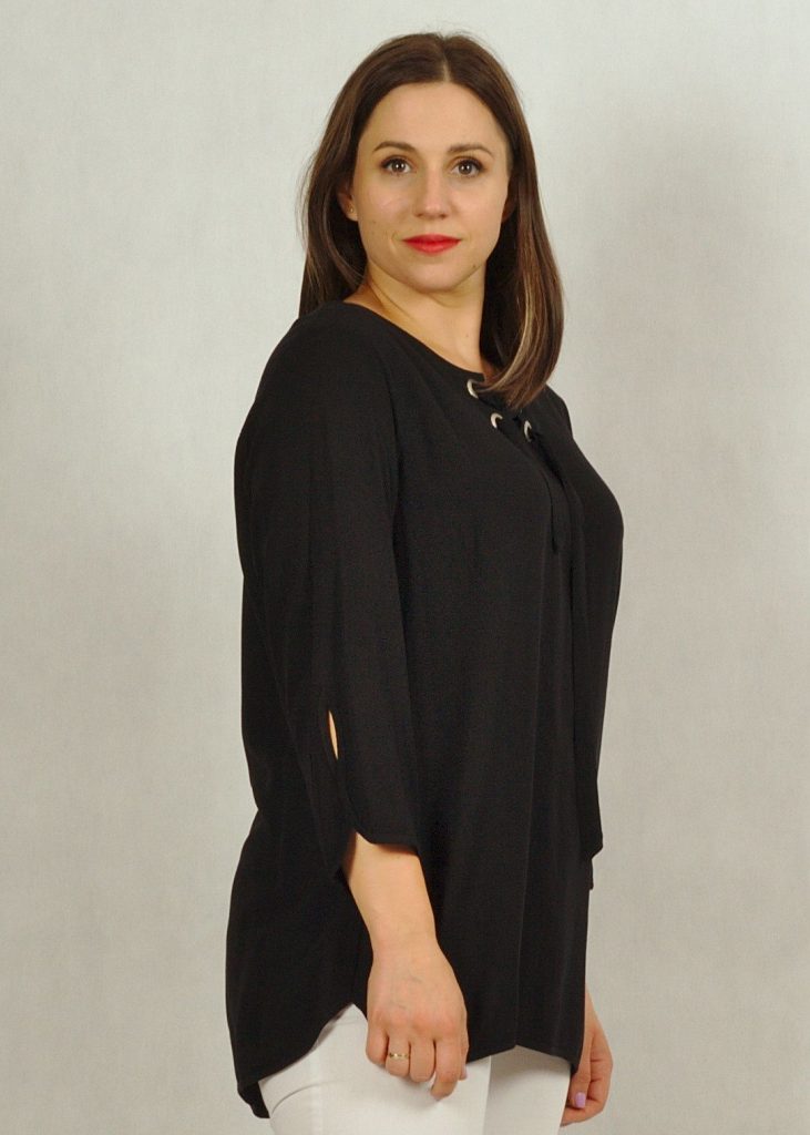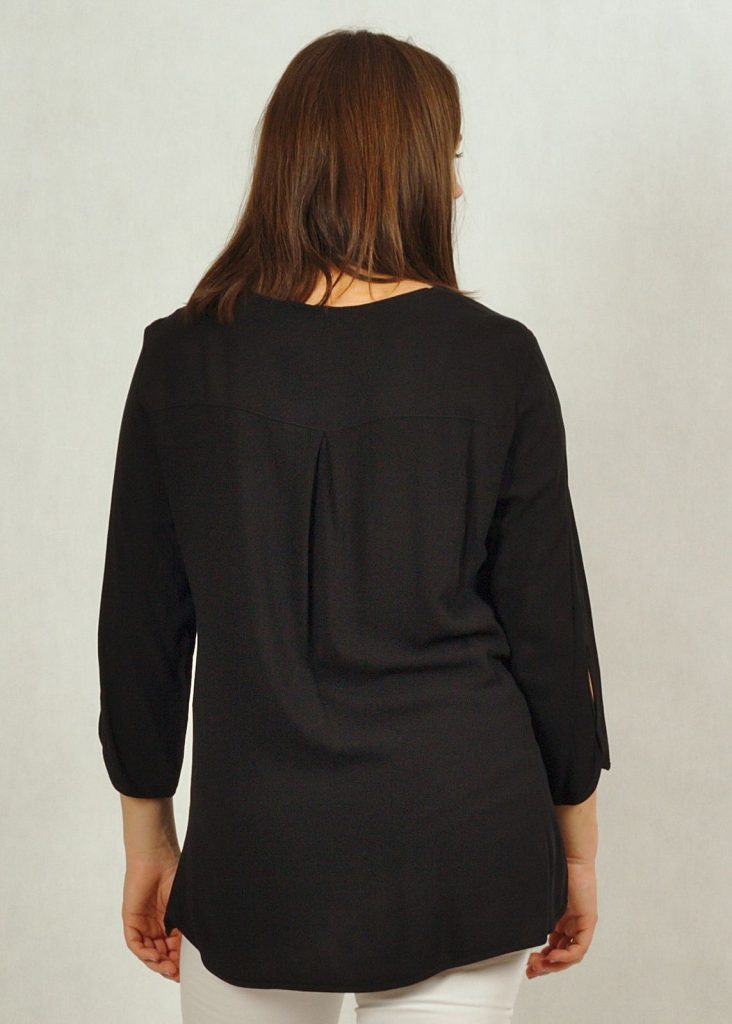 Tunika ma piękny rękaw 7/8, z ozdobną łezką pod łokciem.