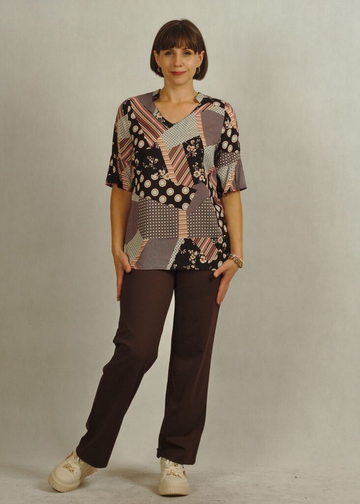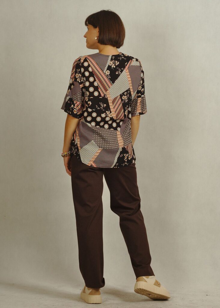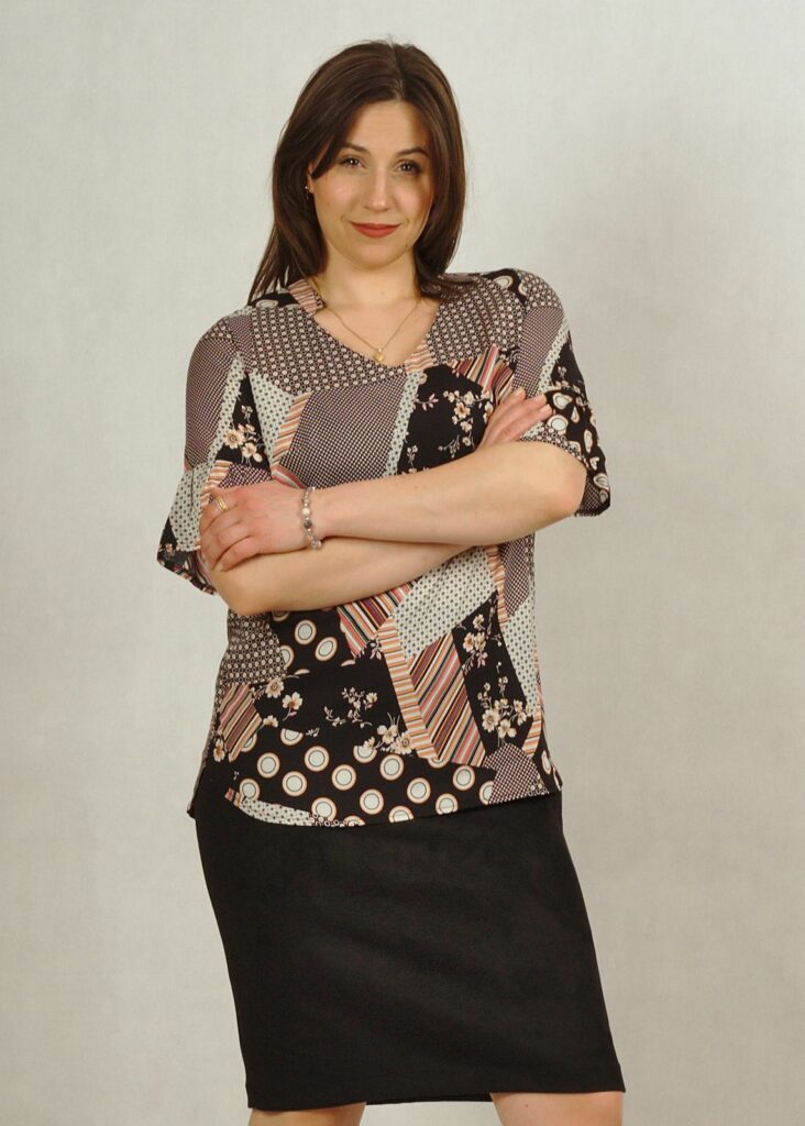 Ma wyjątkowy dekolt w serek, z wykończoną stójką. Długość bluzki sięga za biodra, dzięki temu poczujesz się komfortowo. Bluzka świetnie może wyglądać włożona do spodni lub spódnicy. Zawsze masz wybór.