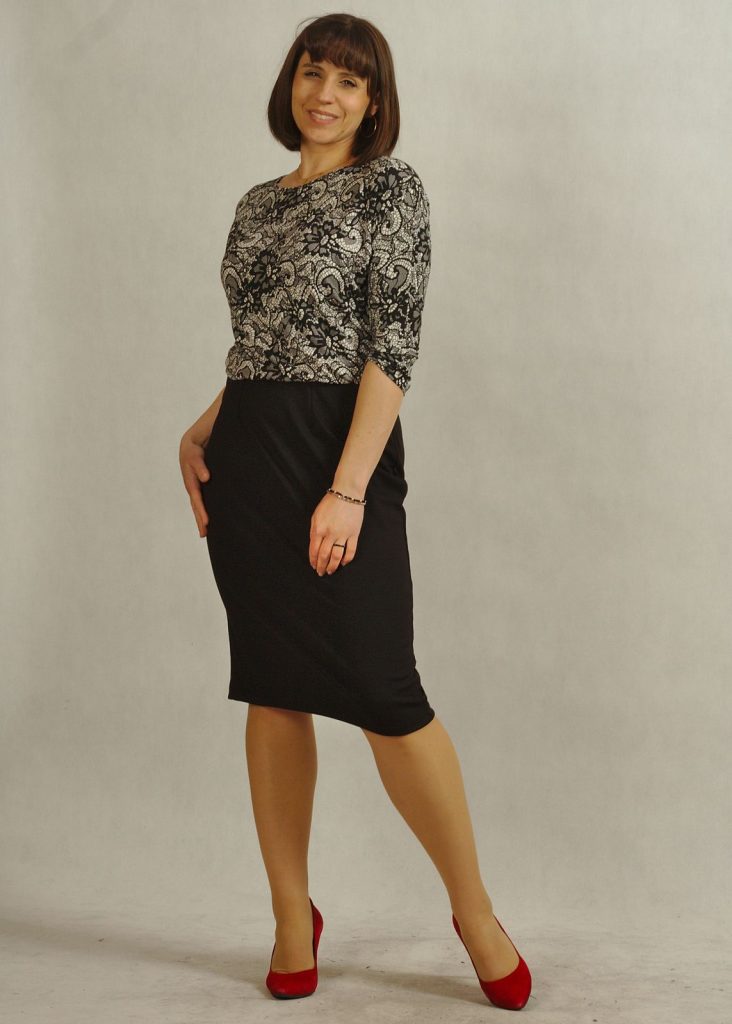 Czarno-biała bluzka w koronkowy wzór z rękawem kimono /716/