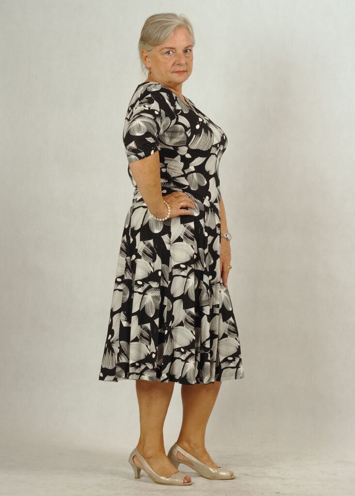 Modelka ma 164 cm wzrostu i nosi rozmiar 2XL.