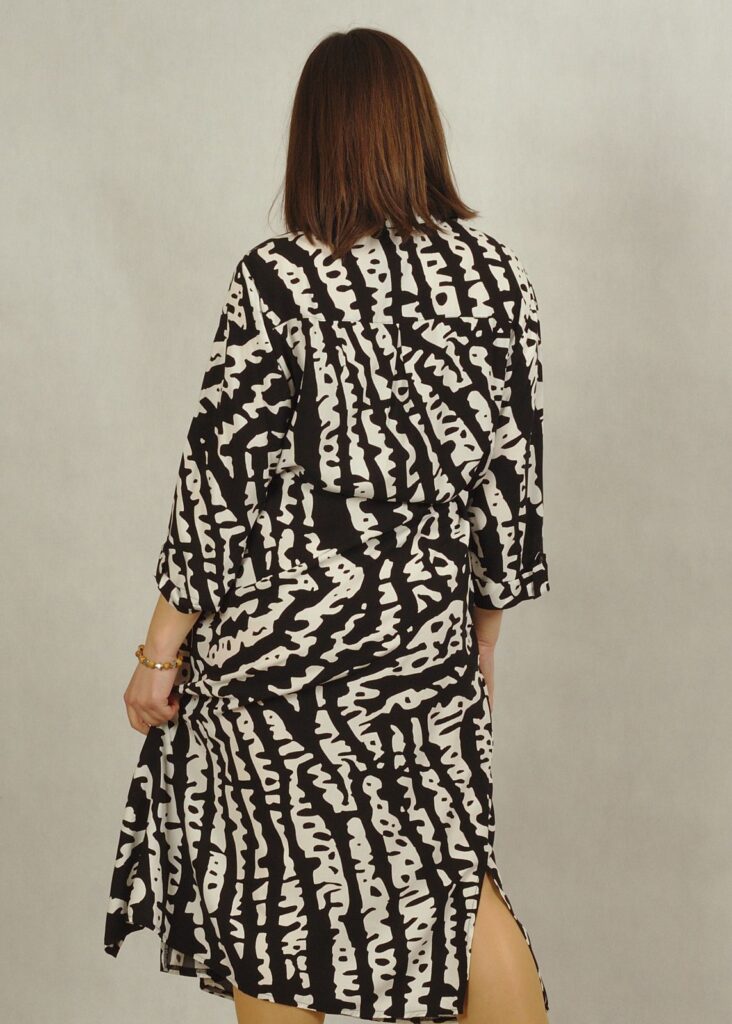 Nasza czarno – biała szmizjerka to propozycja dla Pań, które cenią sobie ekstrawaganckie rozwiązania.