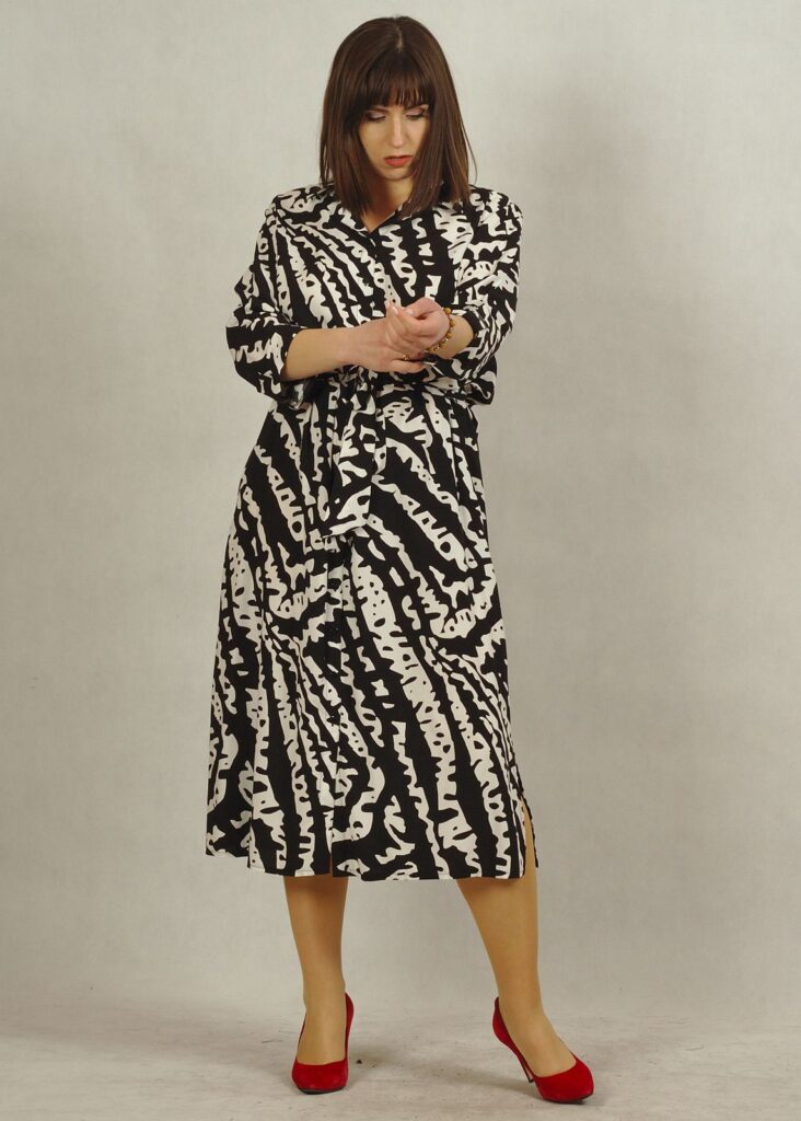 Sukienka midi, pięknie odkrywa łydki. Wykorzystasz do niej Twoje ulubione szpilki 😉
