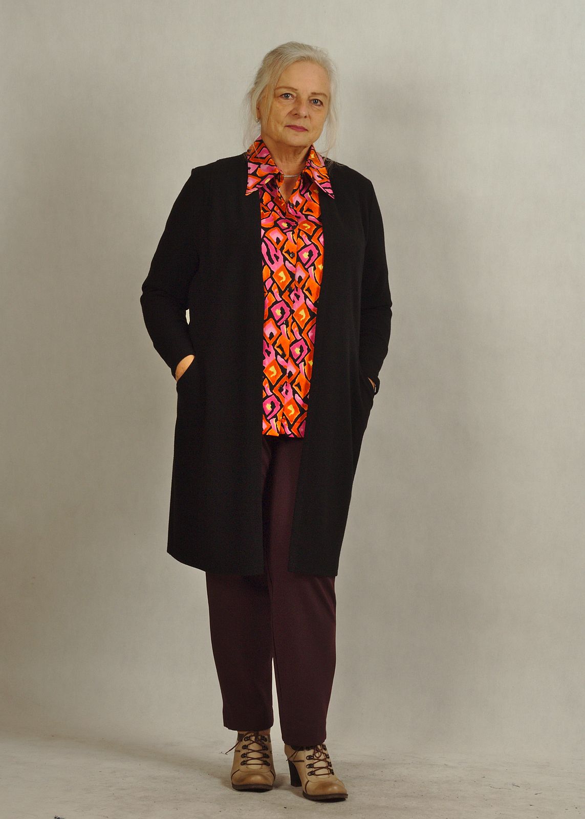 To ciepły kardigan, który może być wykorzystany w chłodne dni, zamiast płaszcza lub kurtki.