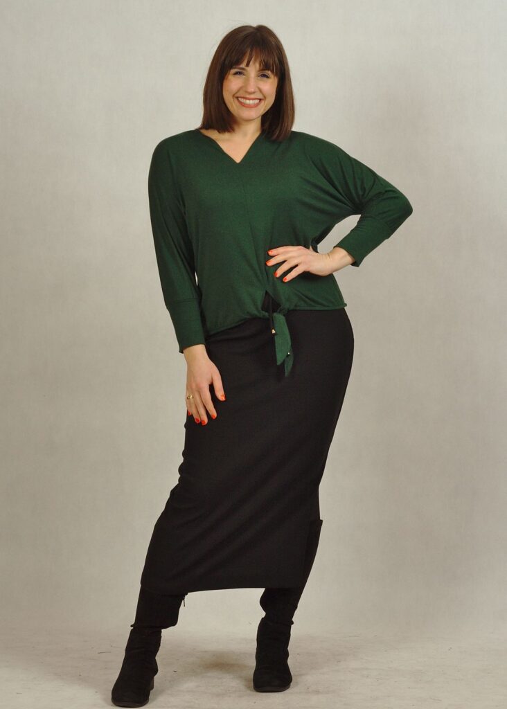 Po lewej stronie bardzo kobiecy rozporek (o długości 33cm), ułatwia użytkowanie na co dzień.