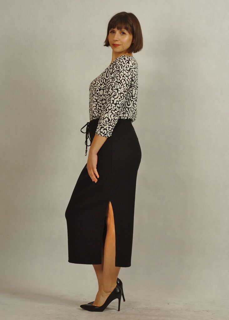 Długość sukienki – do połowy łydki, daje komfort noszenia.