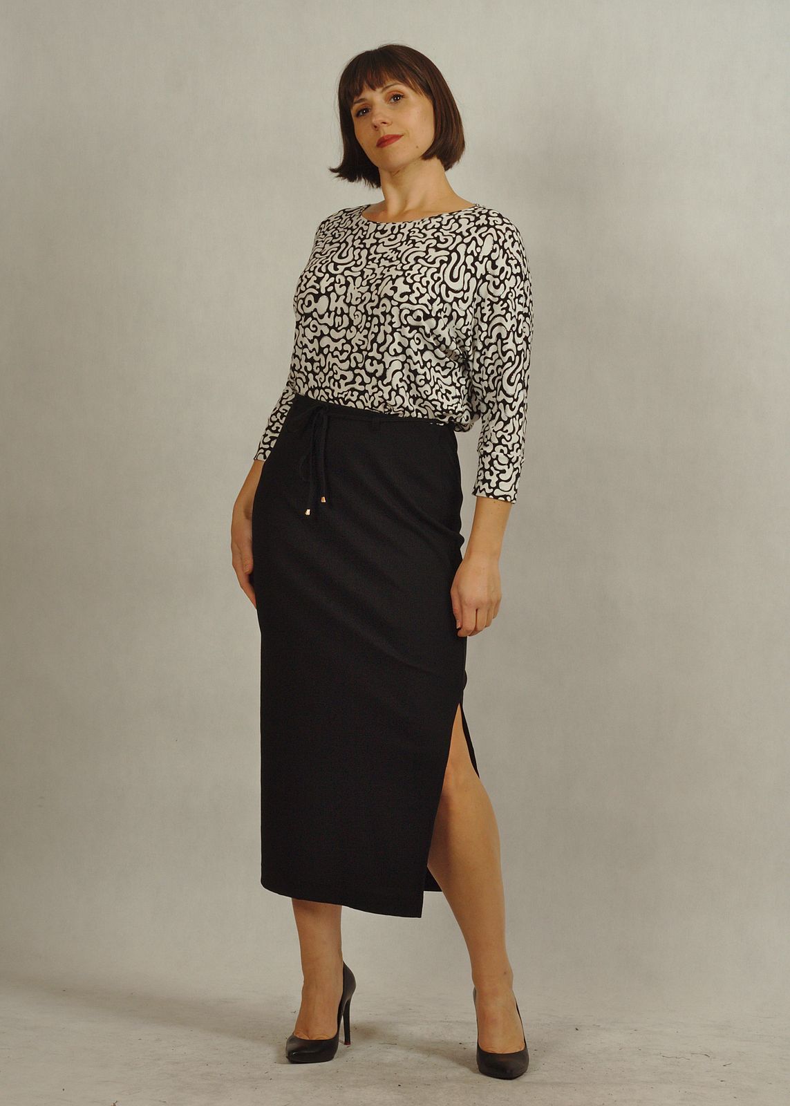 Modna i bardzo wygodna spódnica wykonana z dzianiny prążkowanej w kolorze czarnym.