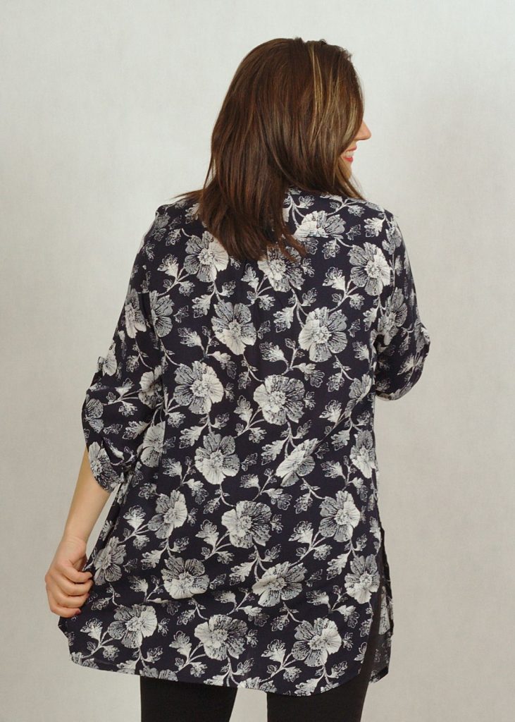 Tunika jest granatowa, w piękne, subtelne kwiaty.