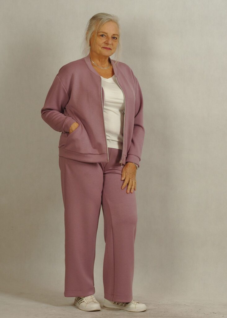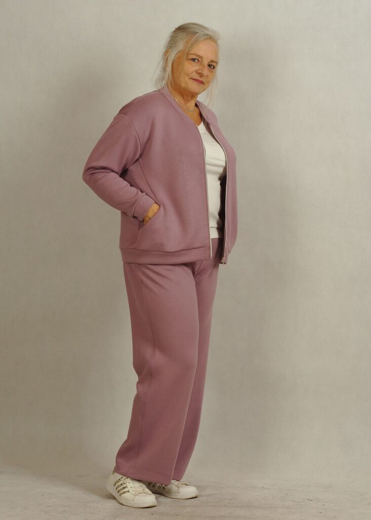 Dwuczęściowy komplet dresowy w wyjątkowym kolorze wrzosowym, to idealny wybór dla kobiet ceniących komfort i modę.