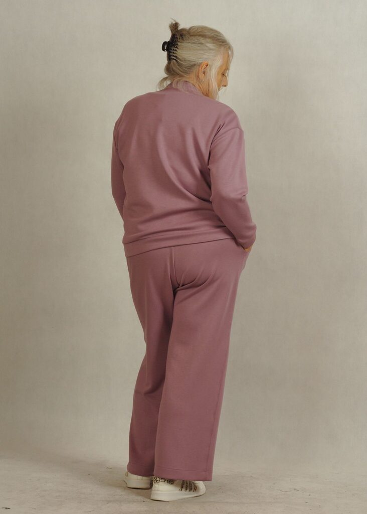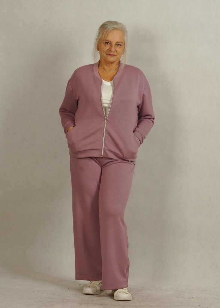 Modny wrzosowy* kolor sprawia, że zestaw wyróżnia się spośród innych, wpisując się w najnowsze trendy mody.