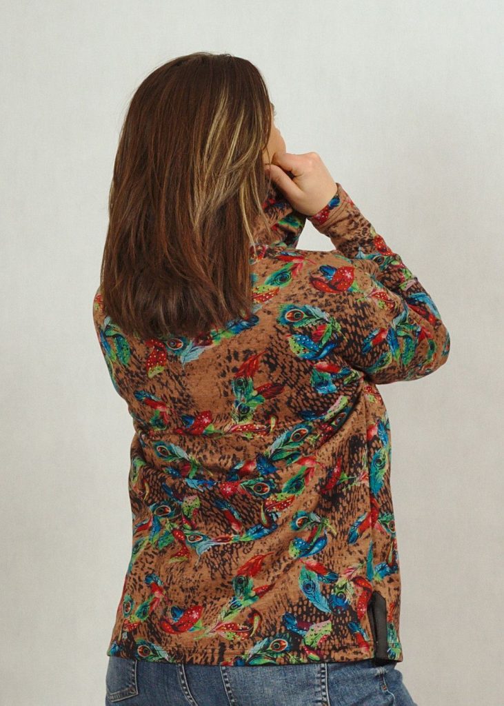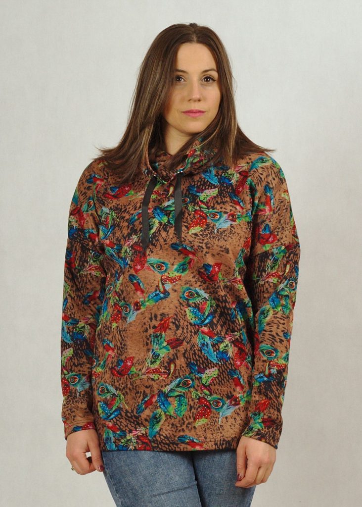 Uniwersalna, choć niebanalna bluza z wzorem w pawie pióra.