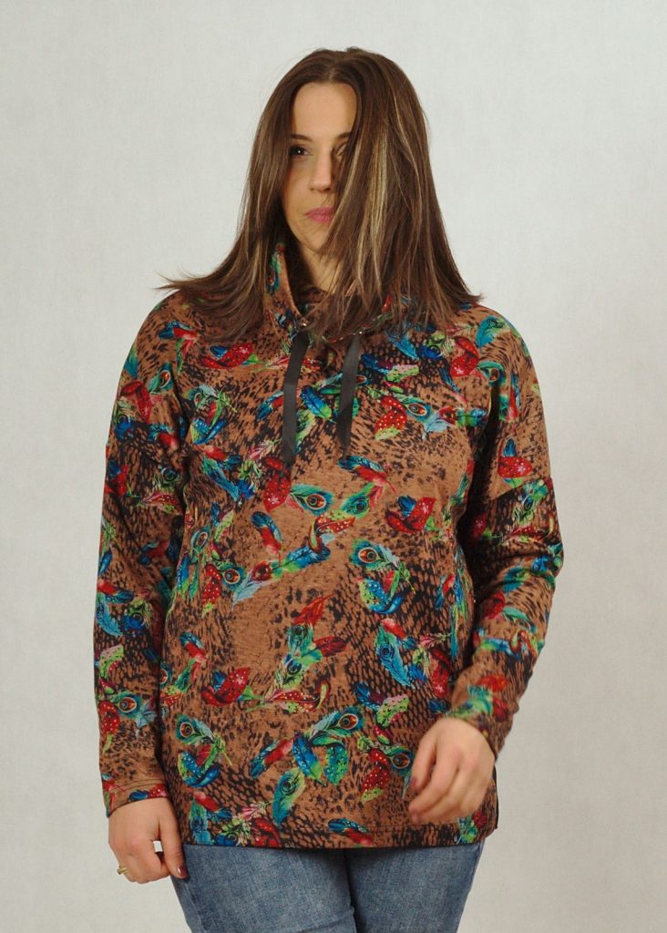 Drukowana bluza w pawie pióra z wysokim kołnierzem plus size /662/