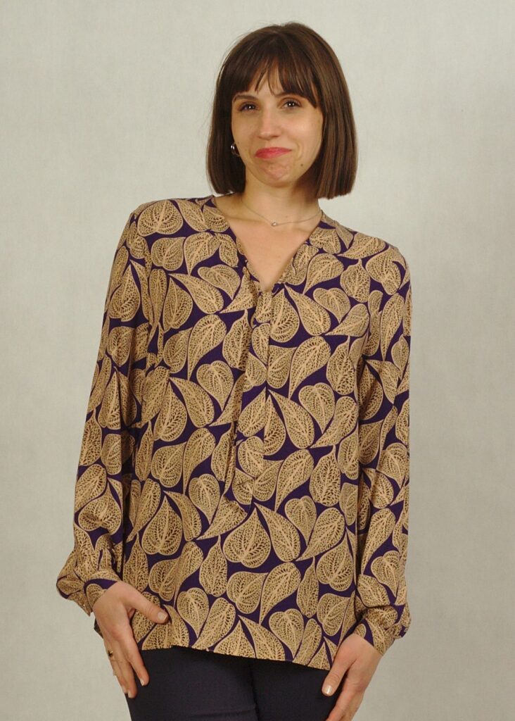 Ten model bluzki jest bardzo elegancki, starannie wykonany z tkaniny wiskozowej 100%. Dzięki temu, jest bardzo przyjemny w dotyku, nie daje poczucia “pocenia się” .