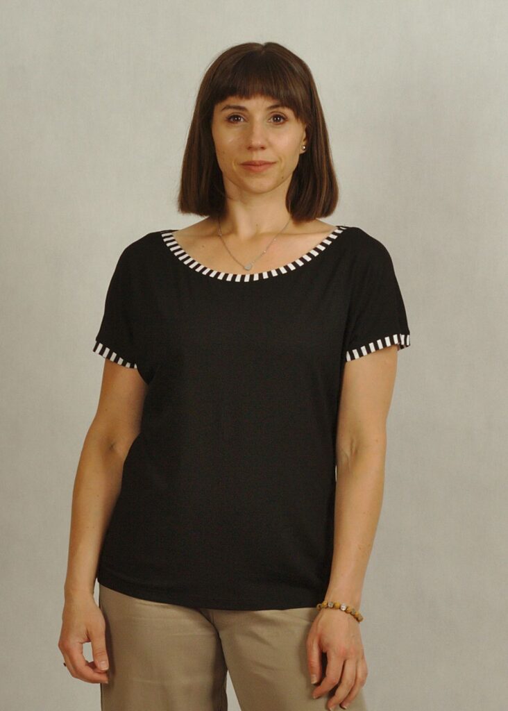 Dzianinowa bluzka z krótkim rękawem w eleganckim kolorze czarnym*.