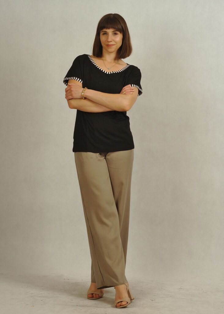 Bluzka posiada opadający rękawek typu kimono, nada Ci swobodę w noszeniu na co dzień.