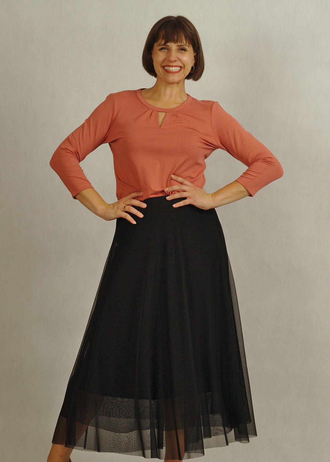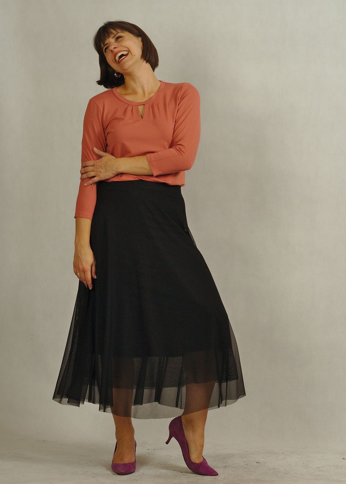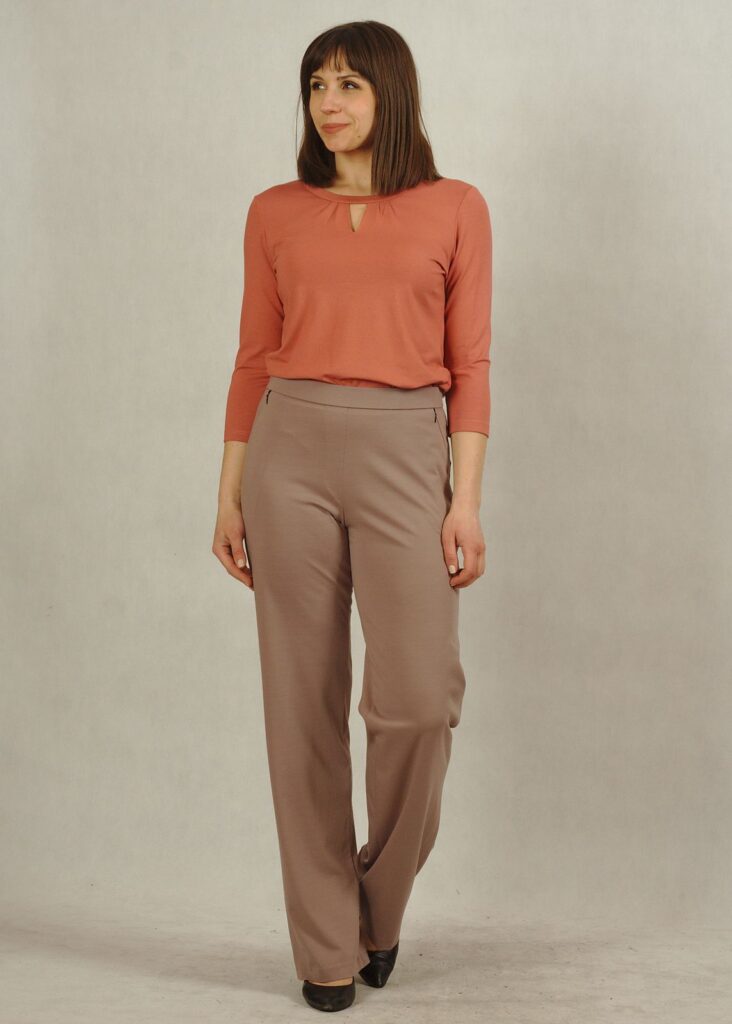 Bluzka z dzianiny (wiskoza 95% i 5% elastan) sprawdzi się idealnie do spodni i spódnicy.