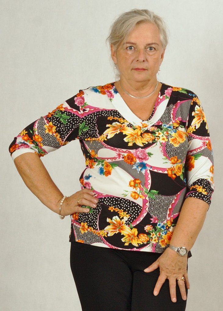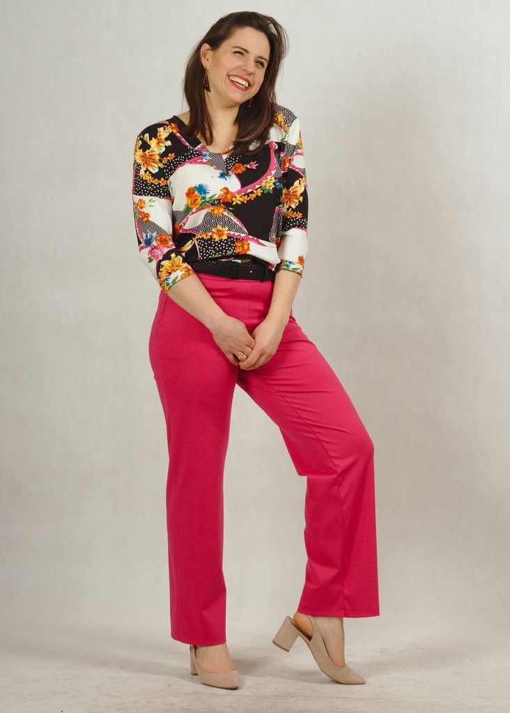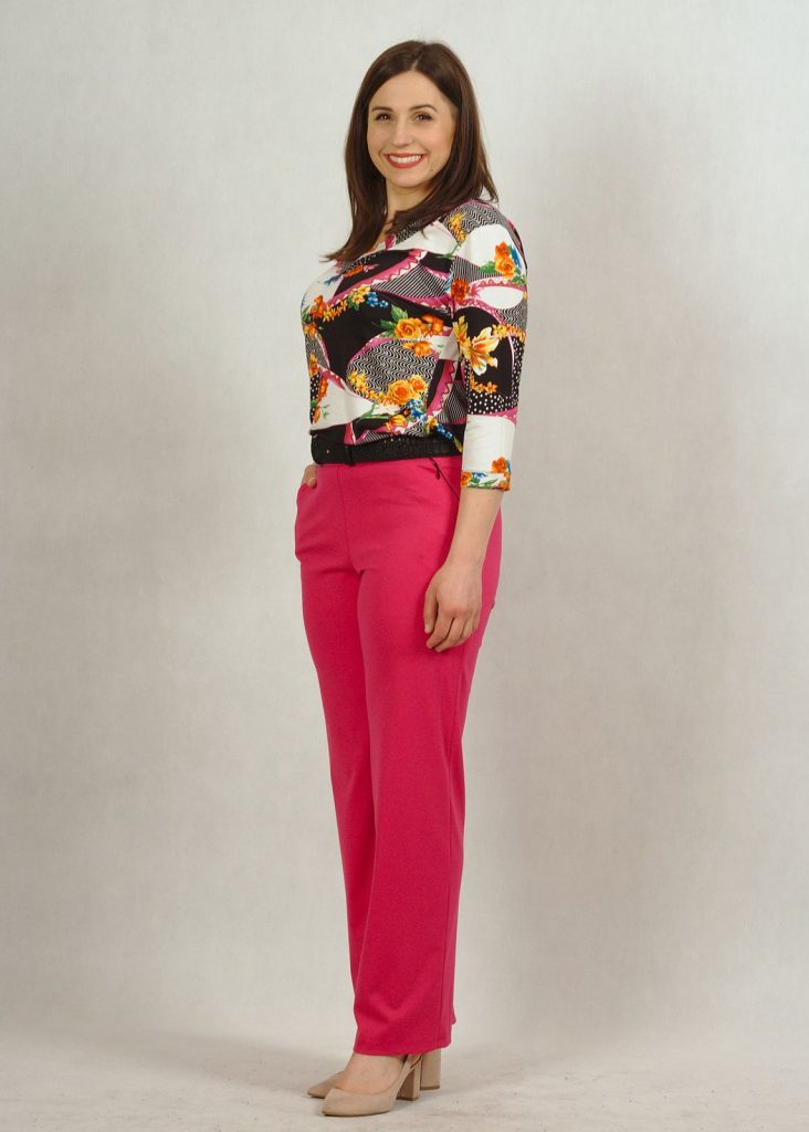 Dekolt w serek wysmukli sylwetkę, a bardzo praktyczny rękaw 3/4 zakryje ramiona.