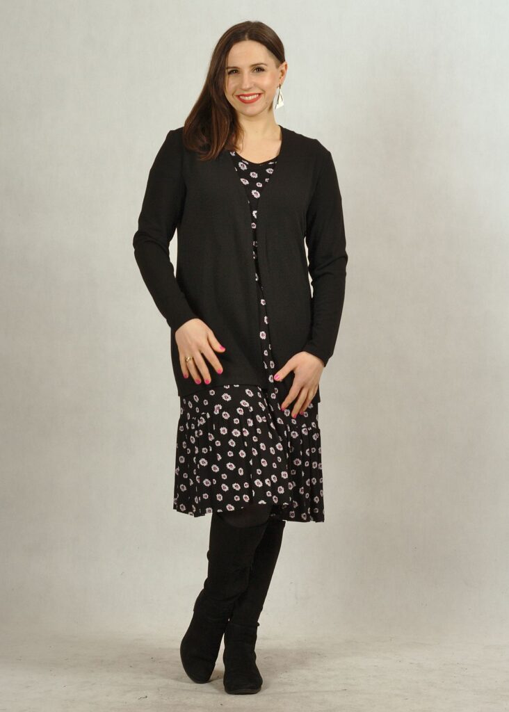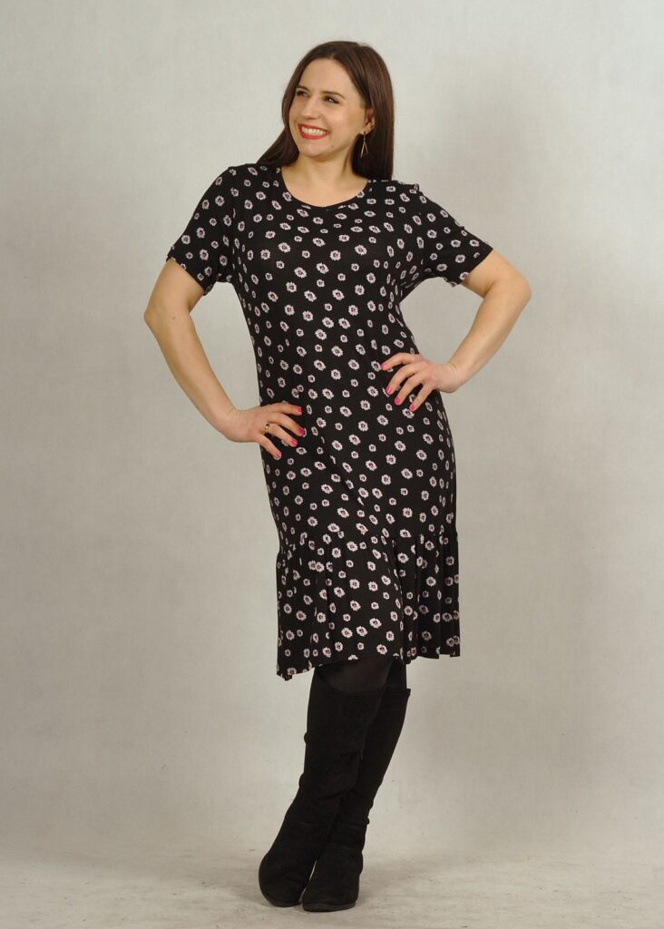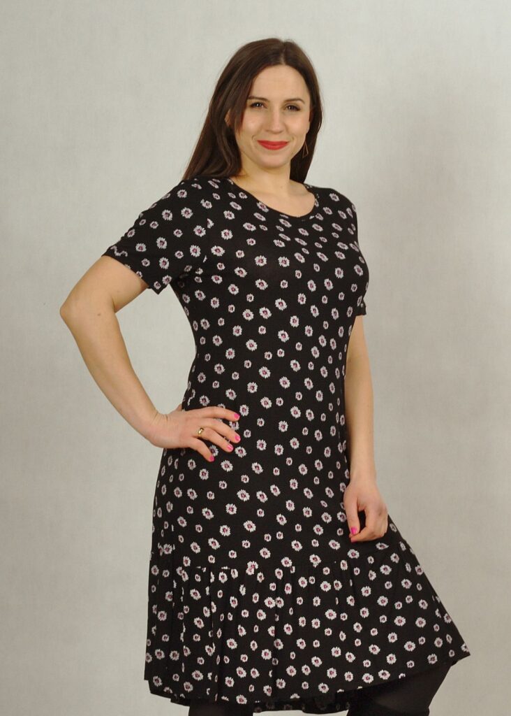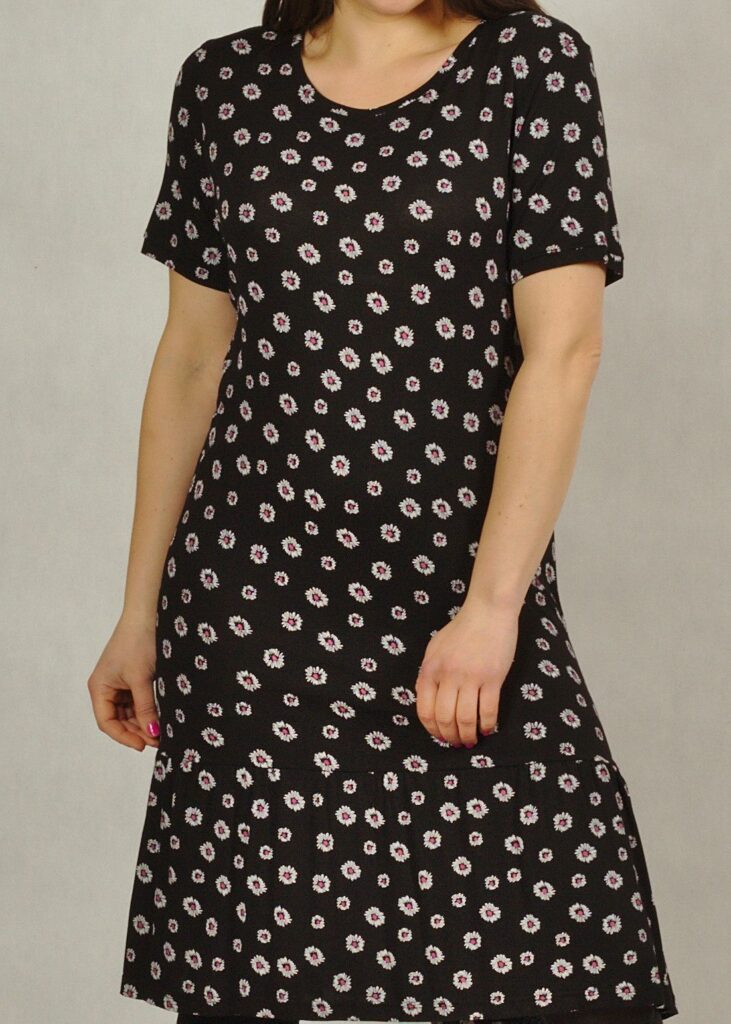 Niezwykle praktyczna sukienka na krótki rękaw, wykonana z wysokiej jakości dzianiny wiskozowej.