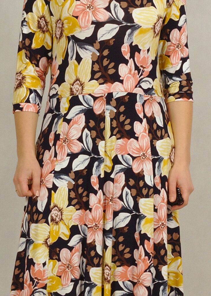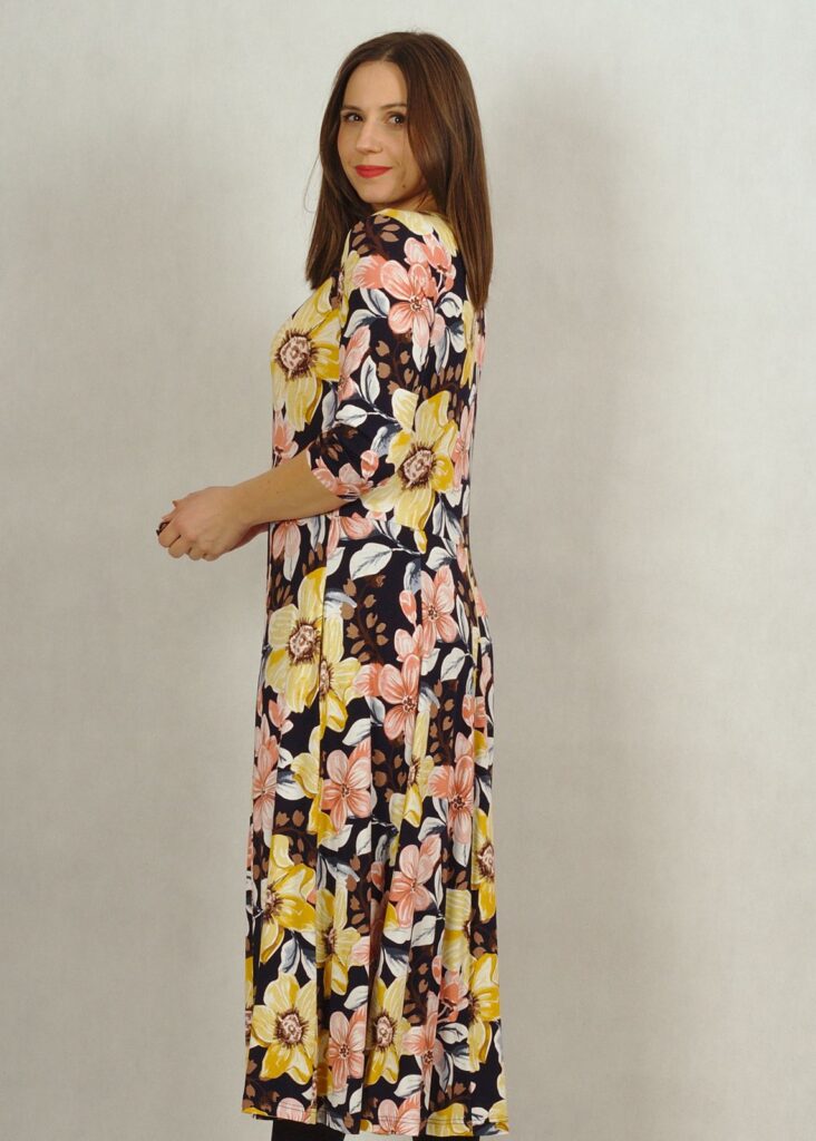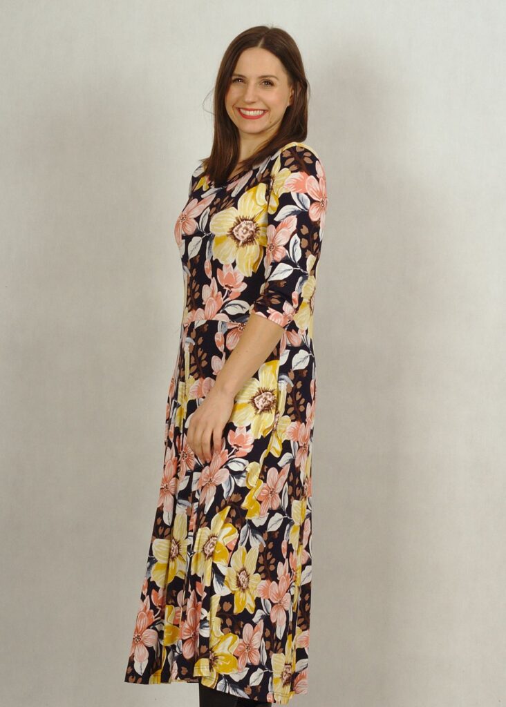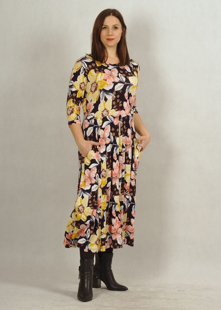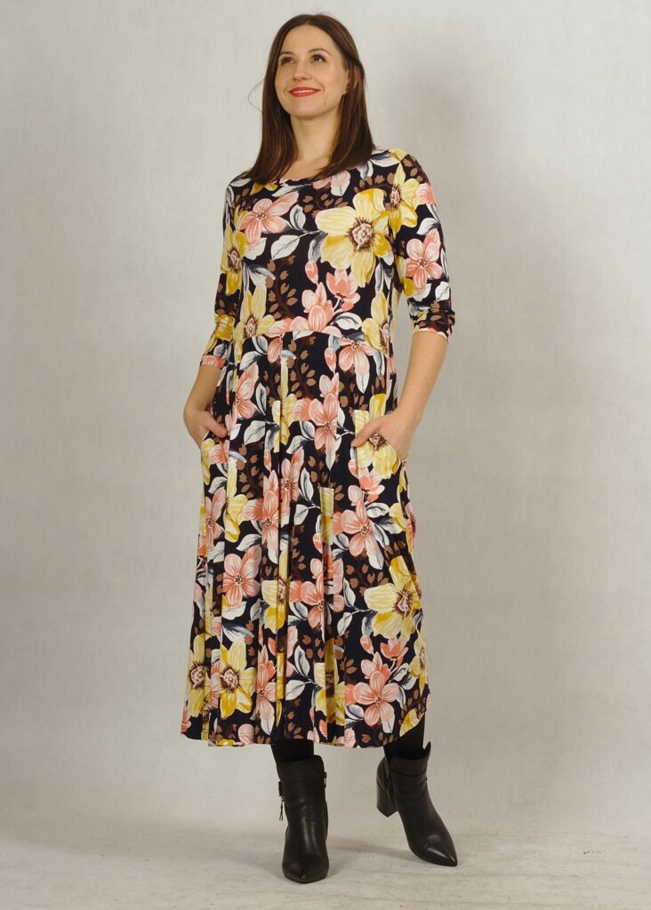 Wygodna sukienka wykonana z przyjemnej dzianiny wiskozowej, będzie Ci towarzyszyć przez cały rok!