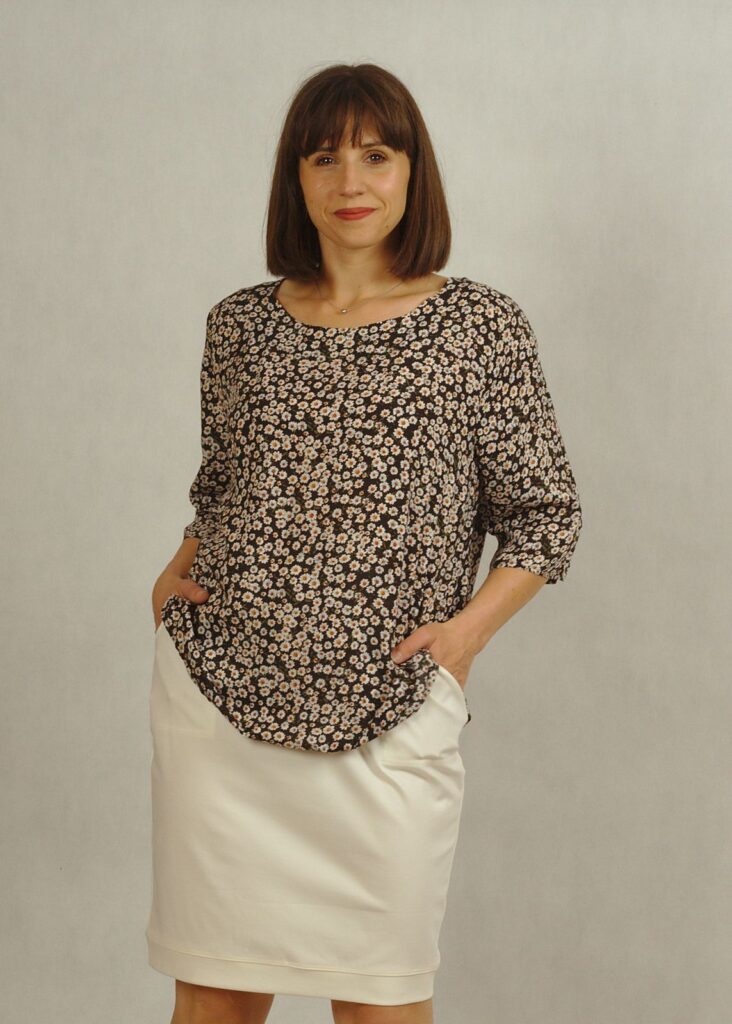 Długość spódnicy jest delikatnie przed kolano. Wiemy, że wiele z Was lubi odkryć trochę więcej, stąd propozycja spódnic w stylu mini 🙂