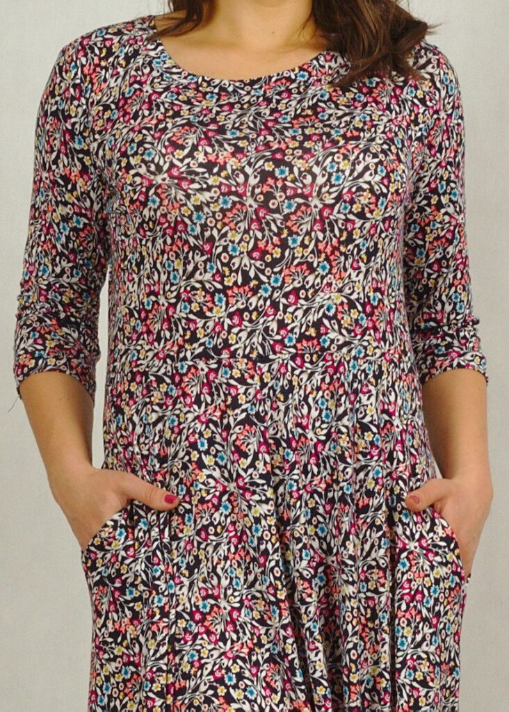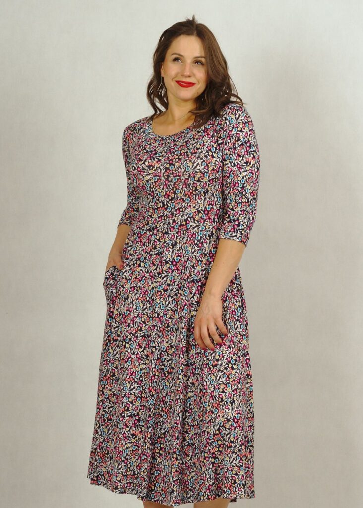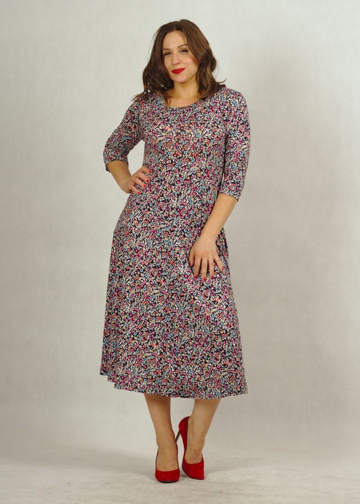 Wygodna sukienka wykonana z przyjemnej dzianiny wiskozowej, będzie Ci towarzyszyć przez cały rok!