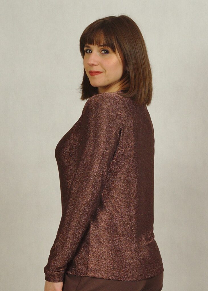 Bluzka brązowa błyszcząca to klasyka i świetny styl.