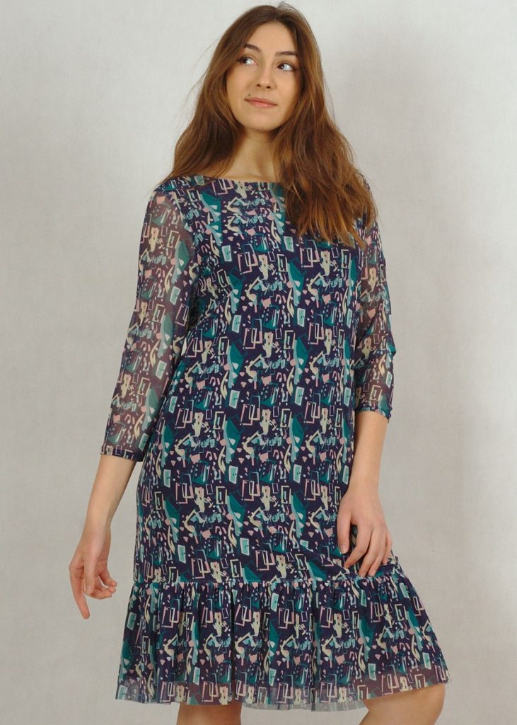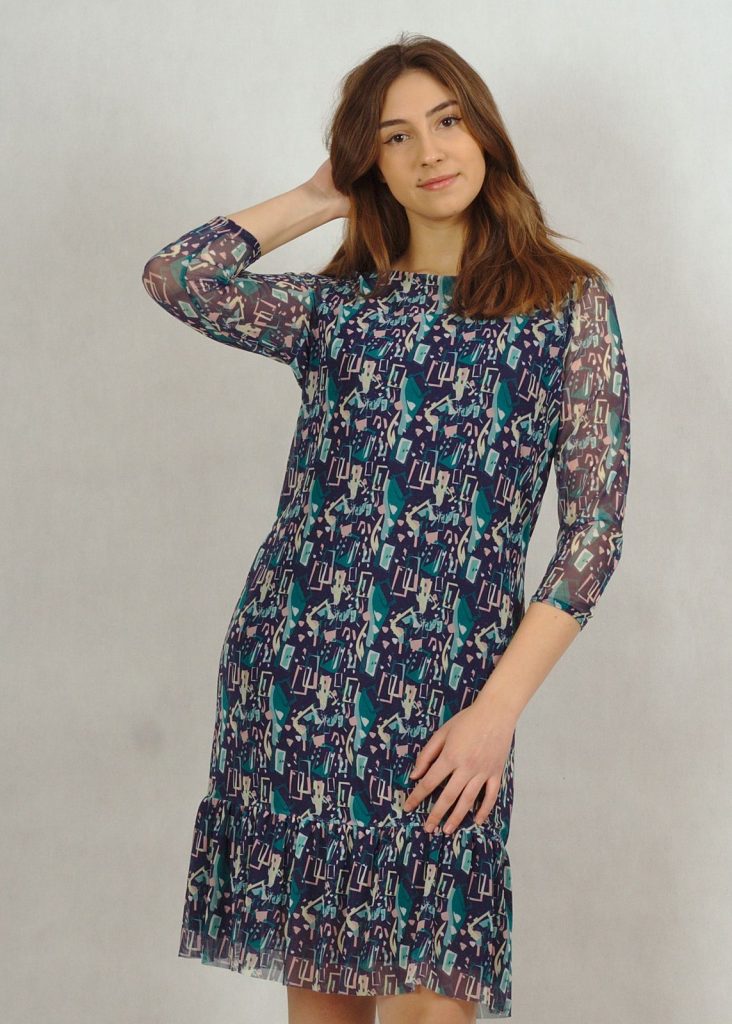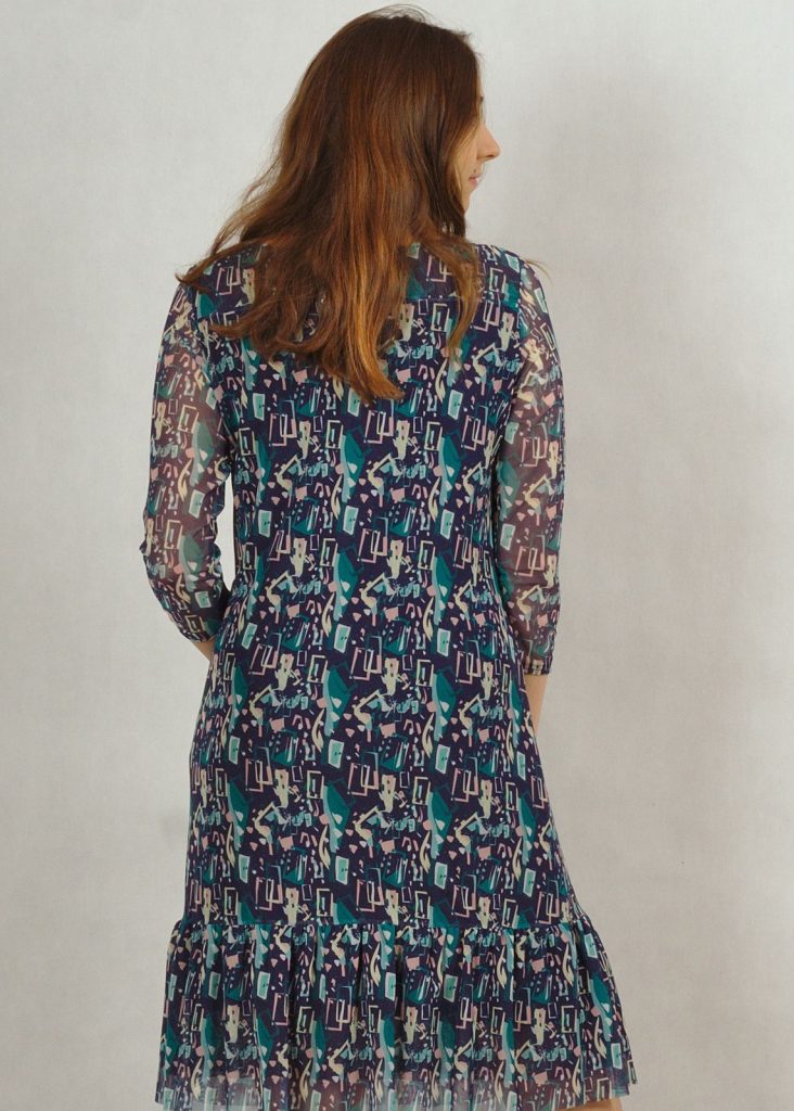 Sukienka z siatki drukowanej w piękne wzory geometryczne.