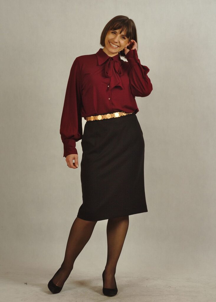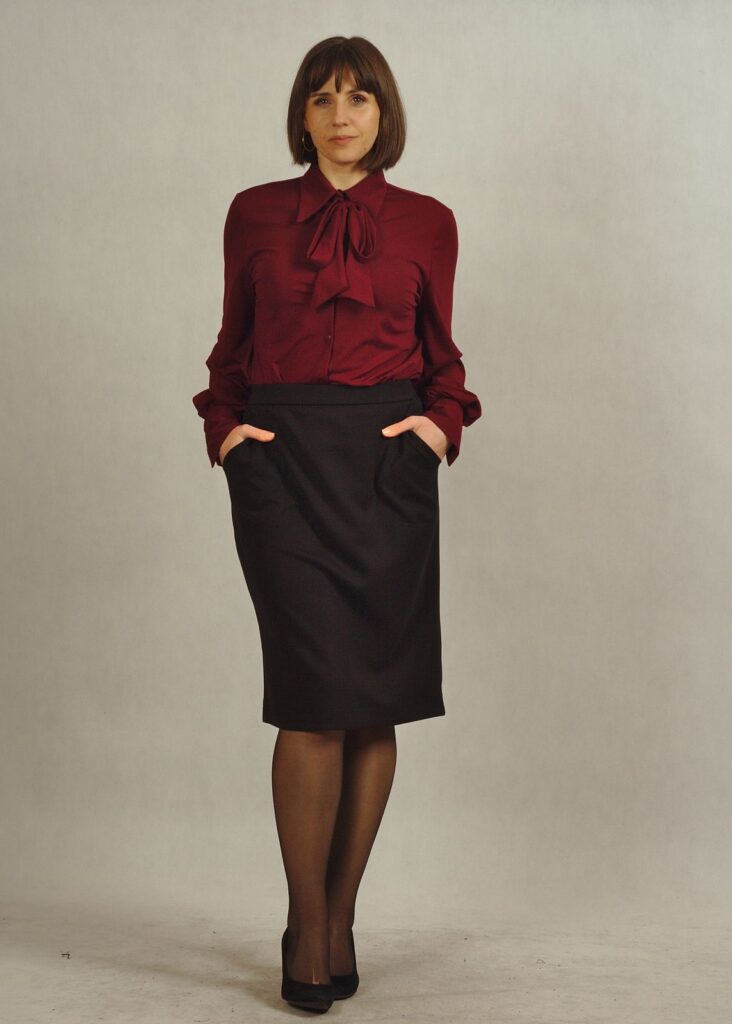 Dzięki dekoracyjnej kokardzie pod szyją zyskuje wyrazisty, kobiecy charakter, idealny zarówno do biura, jak i na specjalne okazje.
