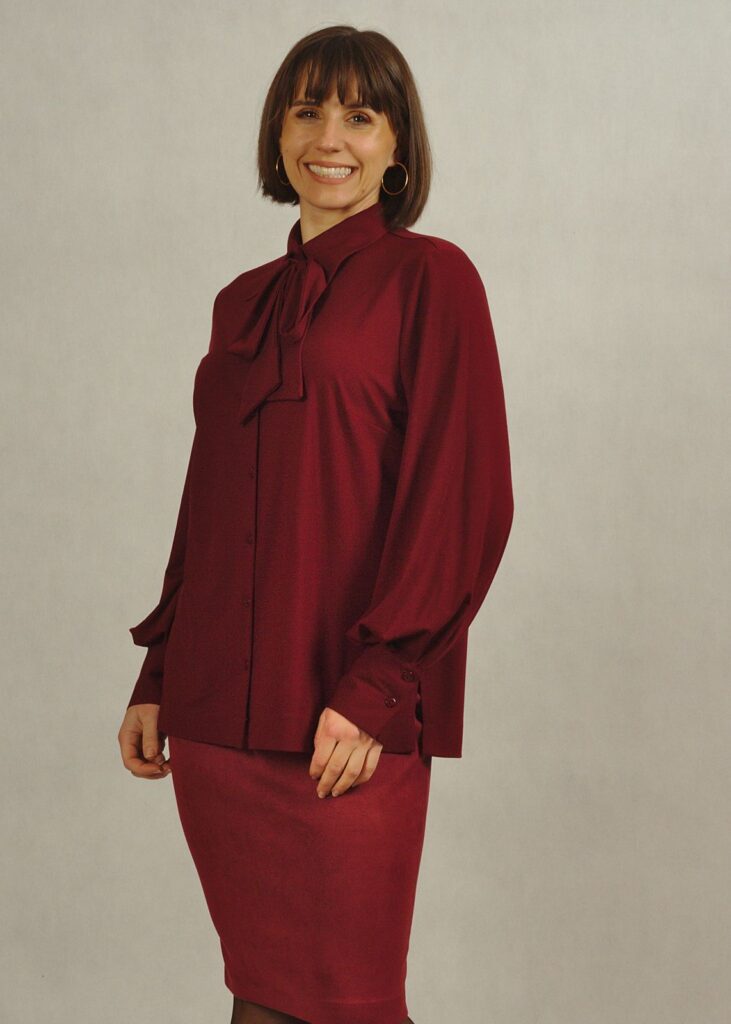 Ta koszula bordowa z kokardą to must-have w garderobie każdej kobiety, która chce połączyć styl, wygodę i ponadczasową elegancję.