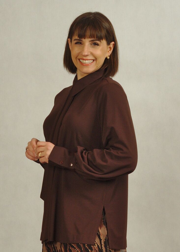 To doskonała koszula wizytowa, która świetnie komponuje się ze spódnicą, eleganckimi spodniami czy klasycznymi jeansami.