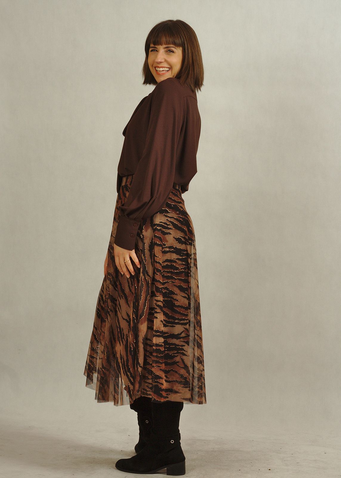 Model wyróżnia się również efektownym detalem, jakim jest bufiasty mankiet, dodający sylwetce lekkości i subtelnej elegancji.