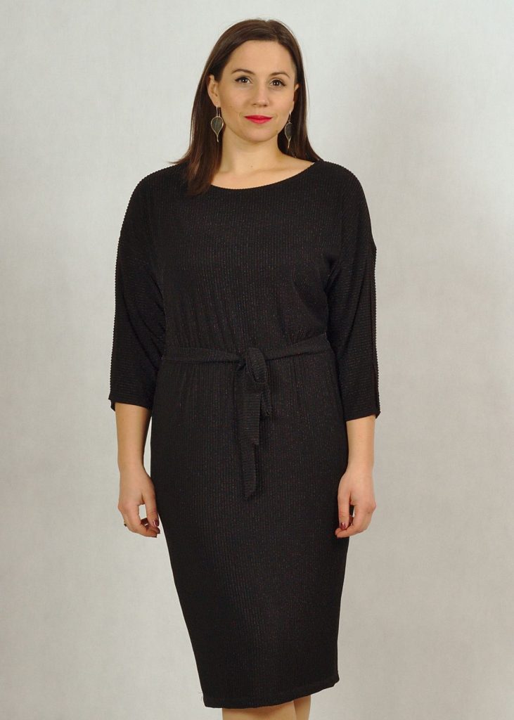 Dodatkowym atutem tej sukienki jest jej pasek, uszyty z tego samego materiału, który można zawiązać w talii i dzięki temu pięknie podkreślone są kobiece kształty i zatuszowane krągłości.