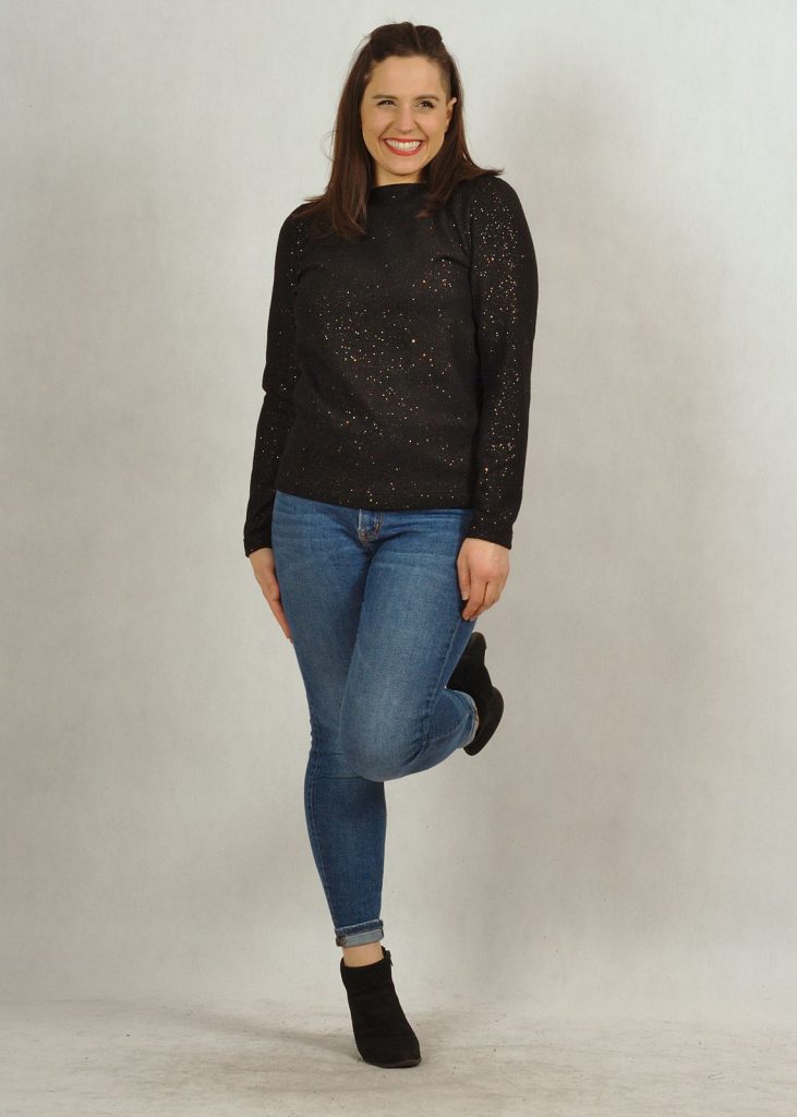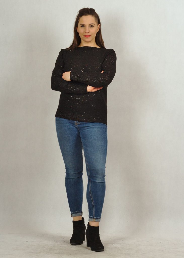 Doskonały sweterek z dzianiny, bardzo miękkiej i przyjemnej w dotyku, która zawiera w składzie wiskozę. Może zachwycić Cię funkcjonalnością.
