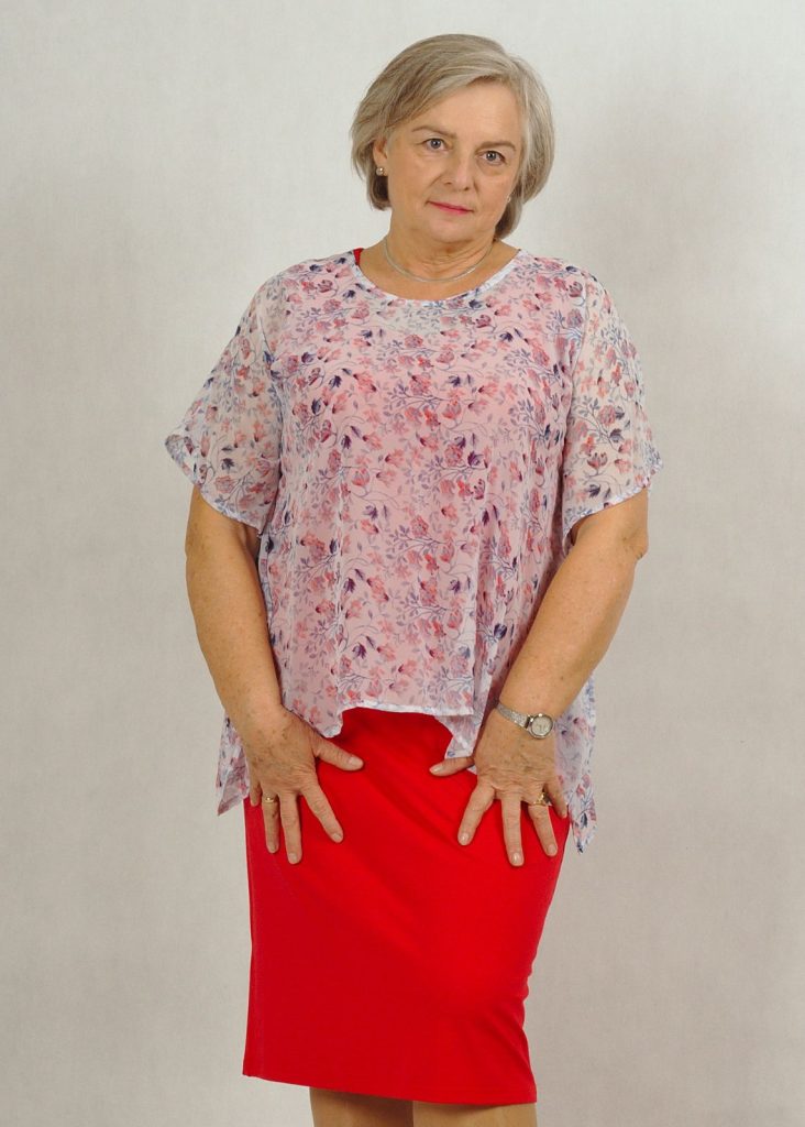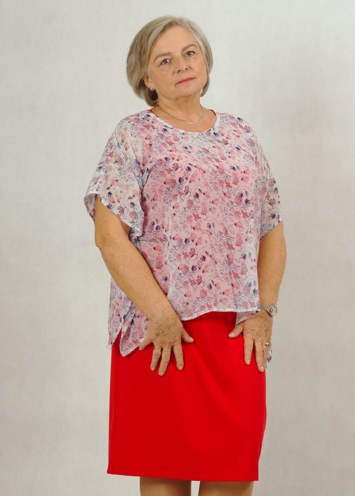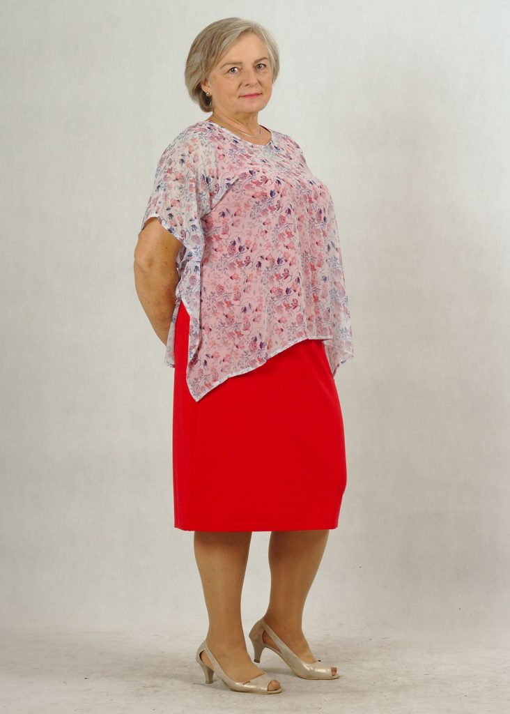 Modelka ma 164 cm wzrostu i nosi rozmiar 2XL.