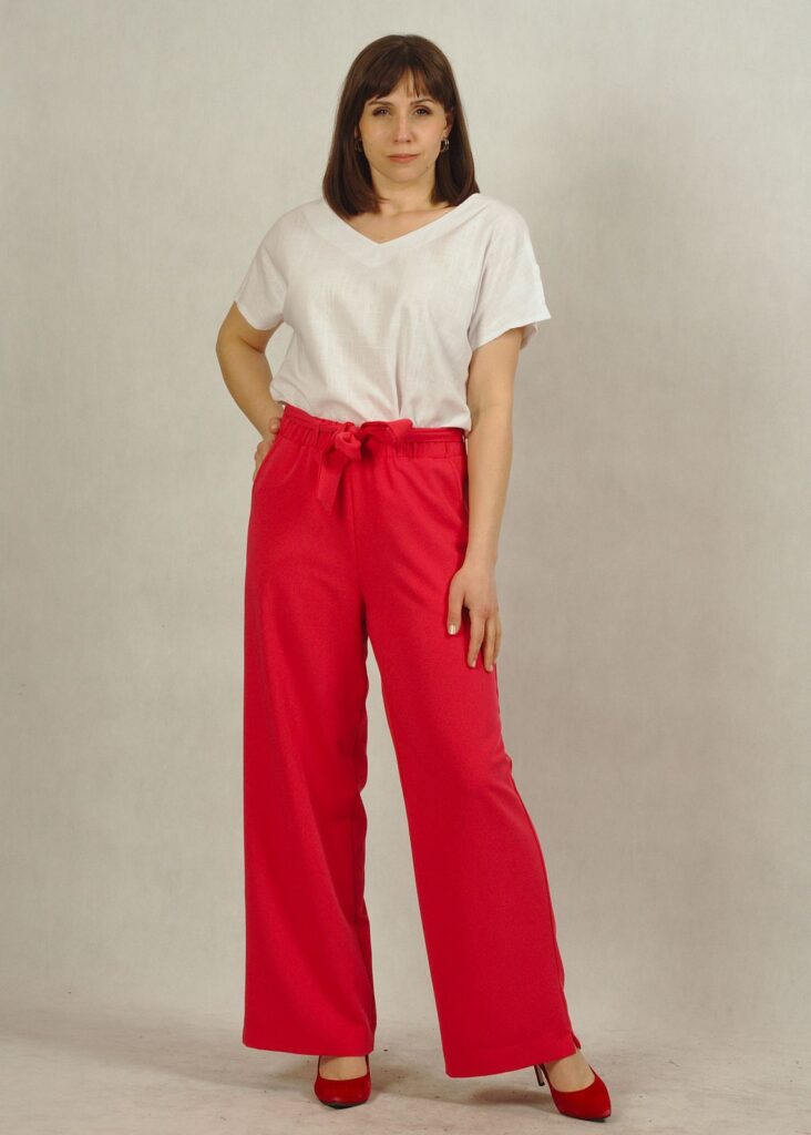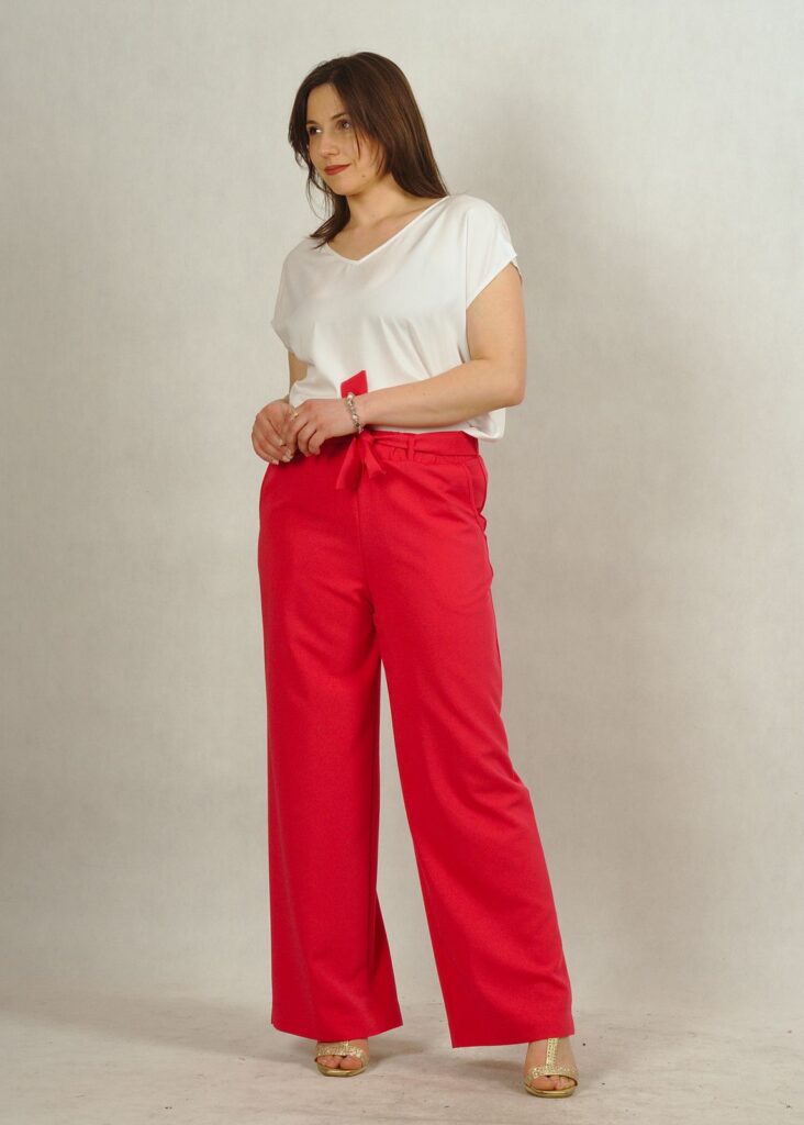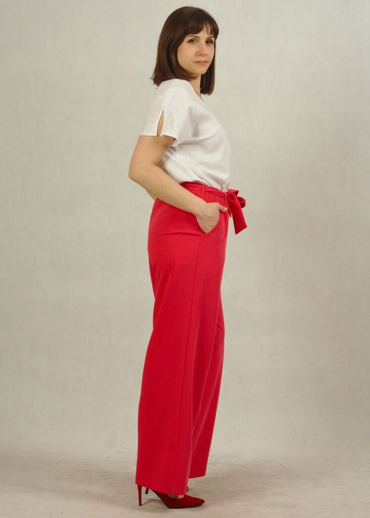 Eleganckie spodnie różowe z szeroką nogawką /751/
