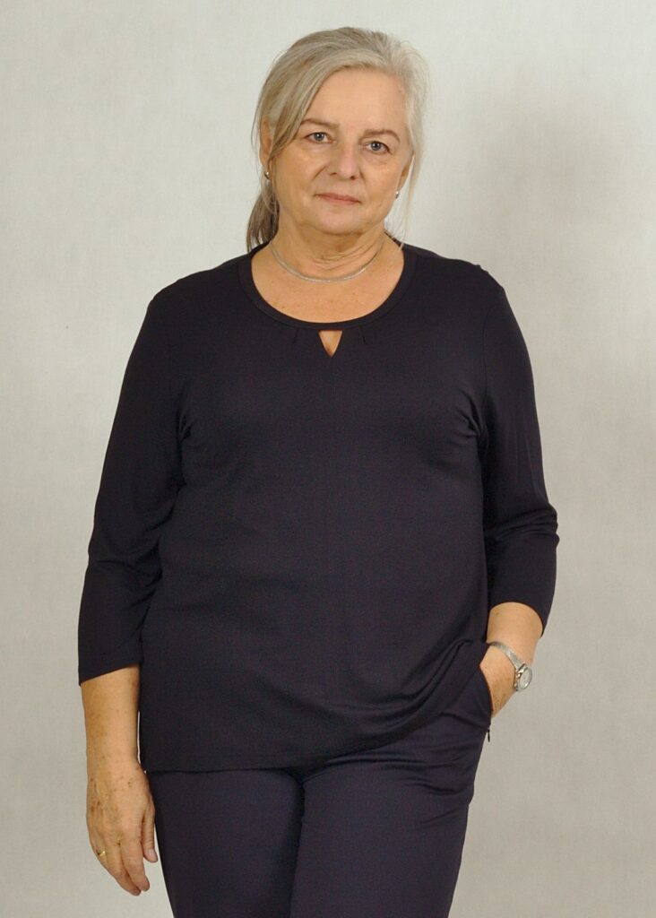 Klasyczna bluzka z gładkiej dzianiny wiskozowej (95% wiskoza, 5% elastan)