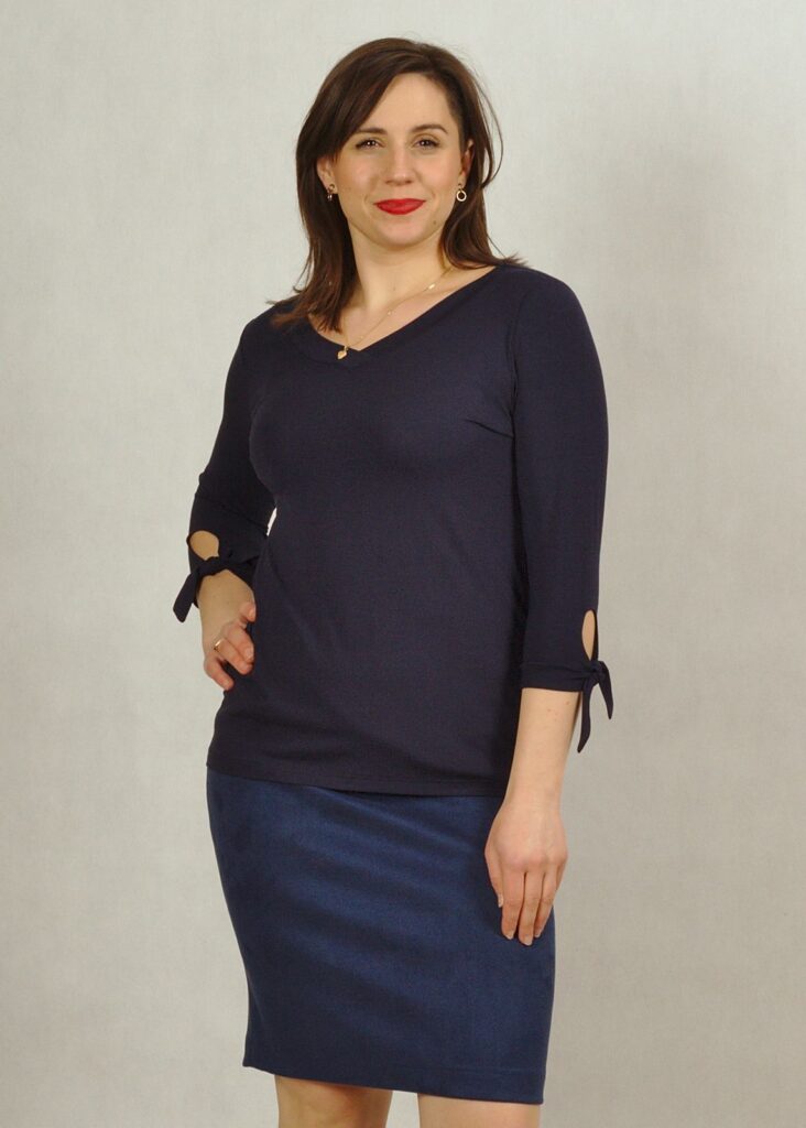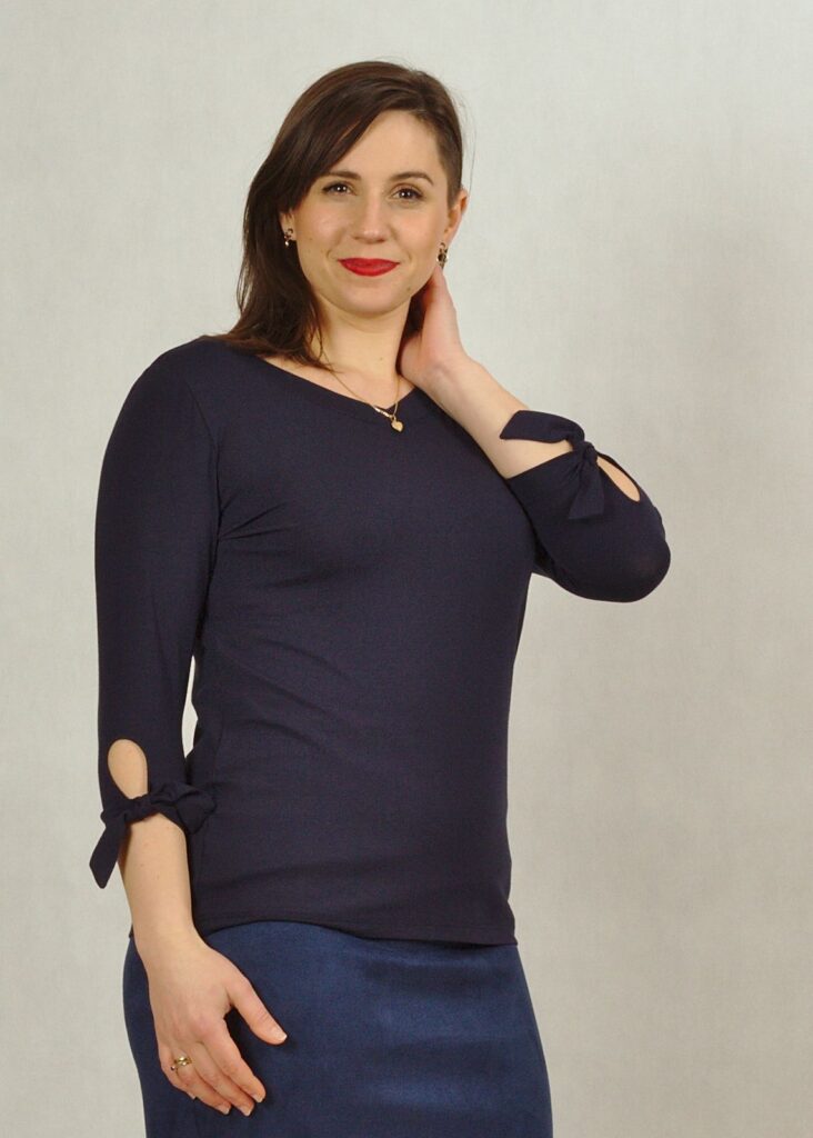 Granatowa* bluzka bazowa sprawdzi się na co dzień i na większe wyjścia.