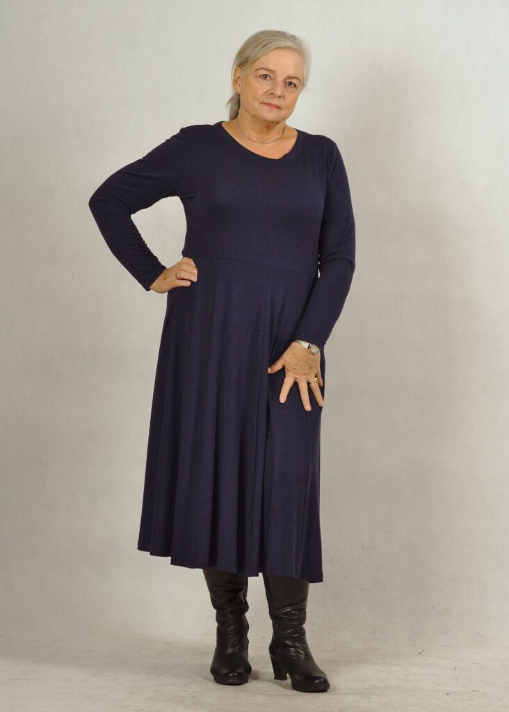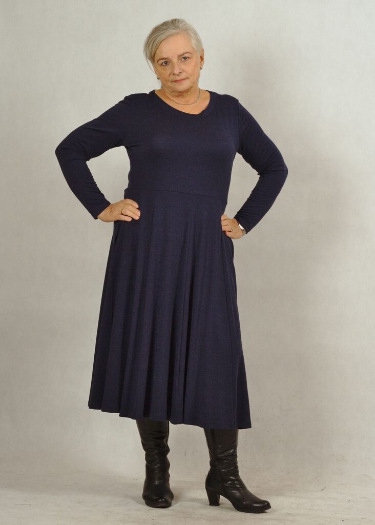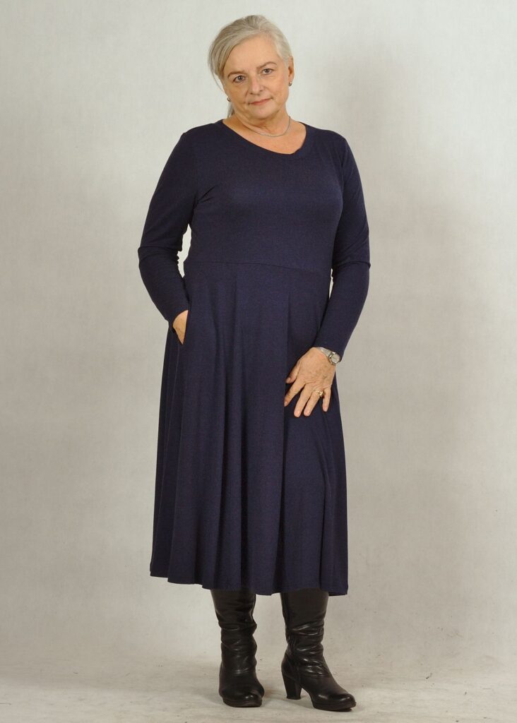 Sukienka to baza pod każdy Twój pomysł na stylizacje. Długi rękaw i delikatny, półokrągły dekolt pozwolą połączyć ją np. z kolorowymi swetrami/bluzami.